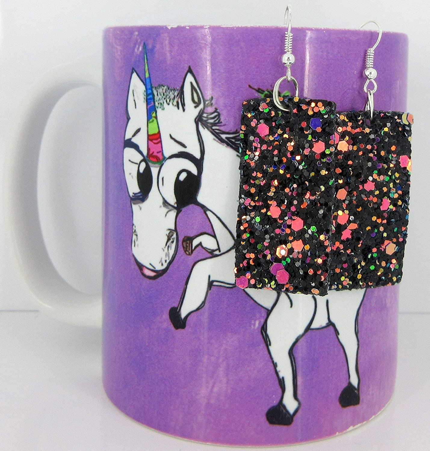 So much fun sparkle! Glitter design is on both sides of these larger statement earrings. Really lightweight. Vegan and faux leather. They are appx. 7/8" W at the largest point. They have a total drop of appx. 2.5" L. Silver-tone fish hook closure. In stock and ready to ship out. Comes in a gift box for easy gift-giving. They're so unique though, you might be tempted to keep them for yourself!