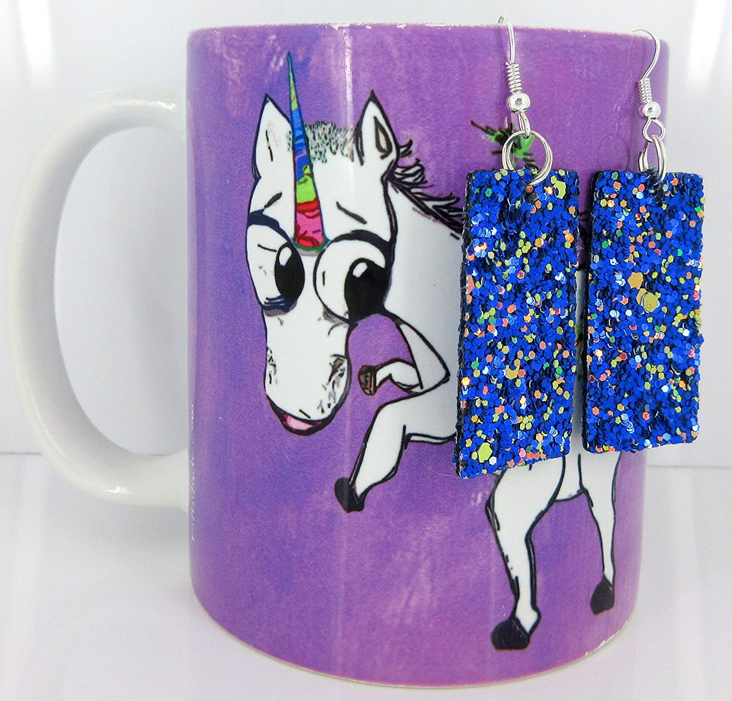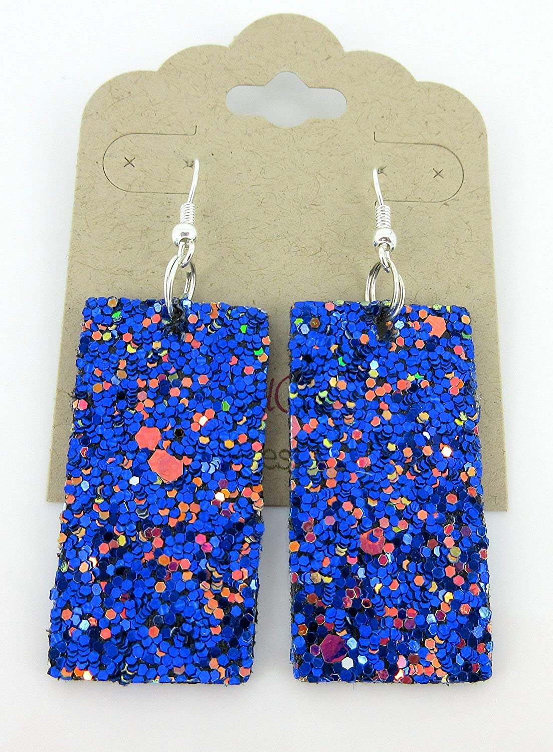 So much fun sparkle! Glitter design is on both sides of these larger statement earrings. Really lightweight. Vegan and faux leather. They are appx. 7/8" W at the largest point. They have a total drop of appx. 2.5" L. Silver-tone fish hook closure. In stock and ready to ship out. Comes in a gift box for easy gift-giving. They're so unique though, you might be tempted to keep them for yourself!