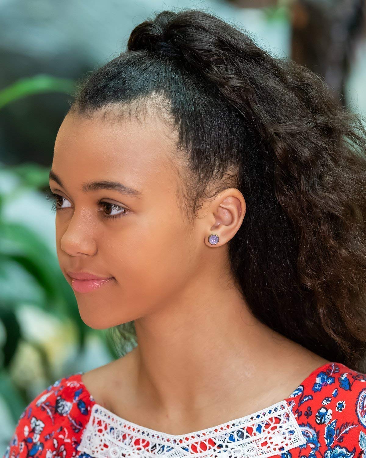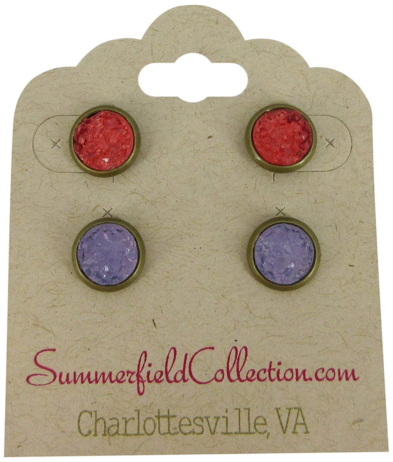 Duo Antiqued Gold-tone Red and Purple Faux Druzy Stone Stud Earrings 8mm Set
