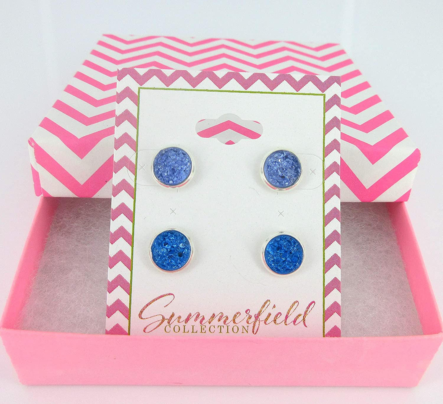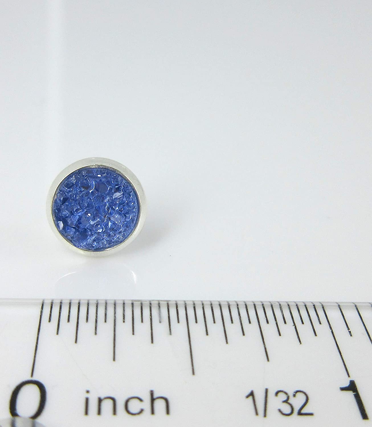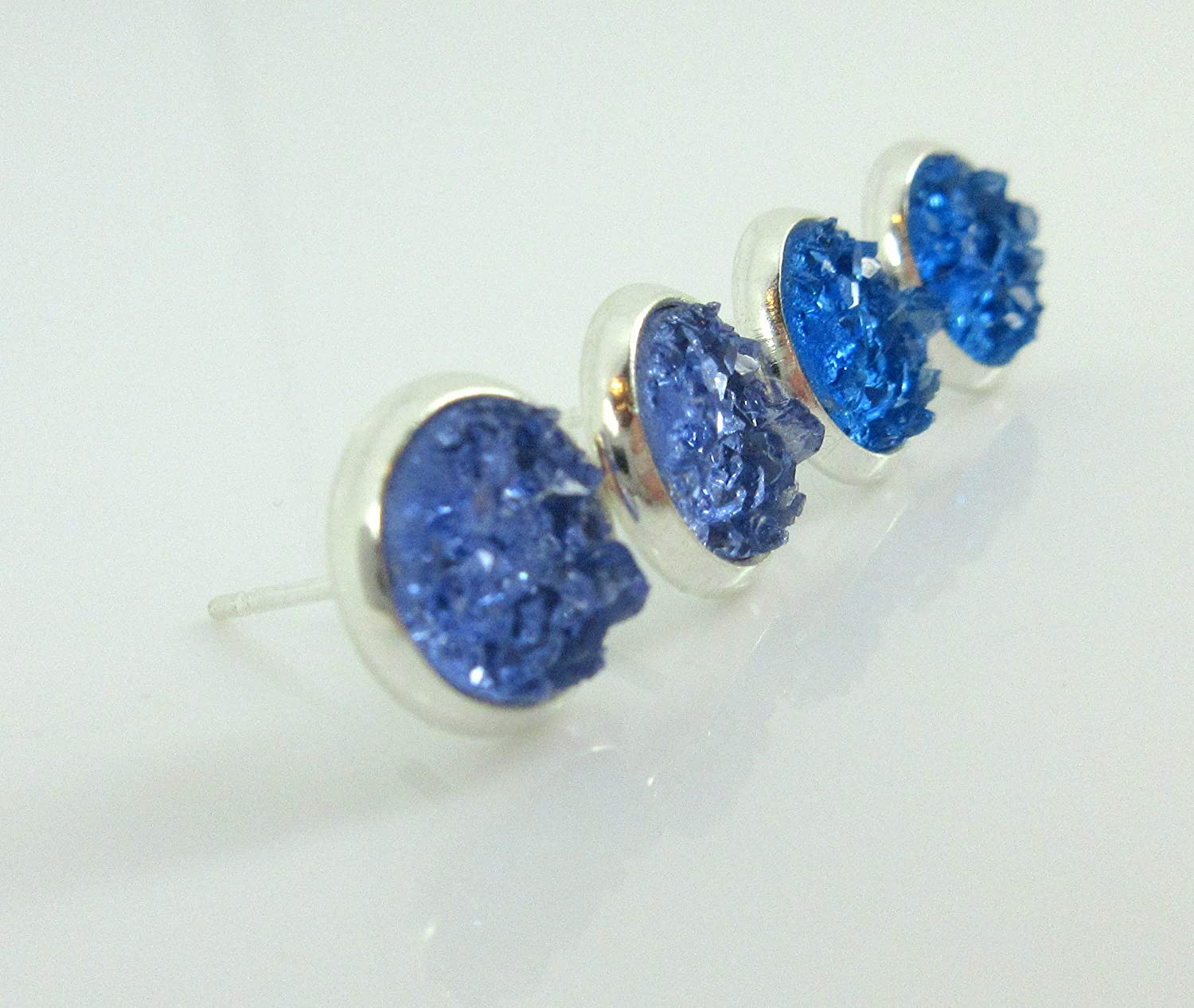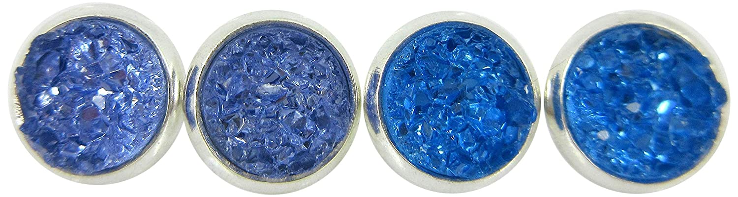 Duo Silver-tone Rainy Day Blues Faux Druzy Stone Stud Earrings 8mm Set