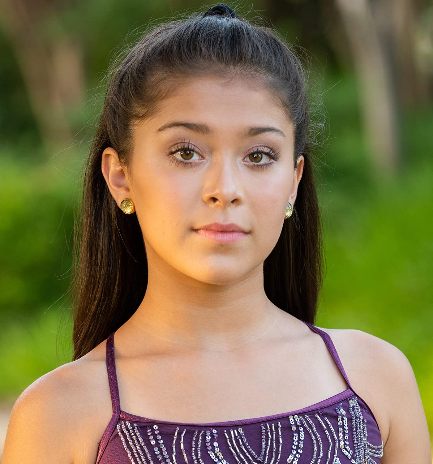 Gold-tone Glitter Glass Stud Earrings Hand-painted 12mm