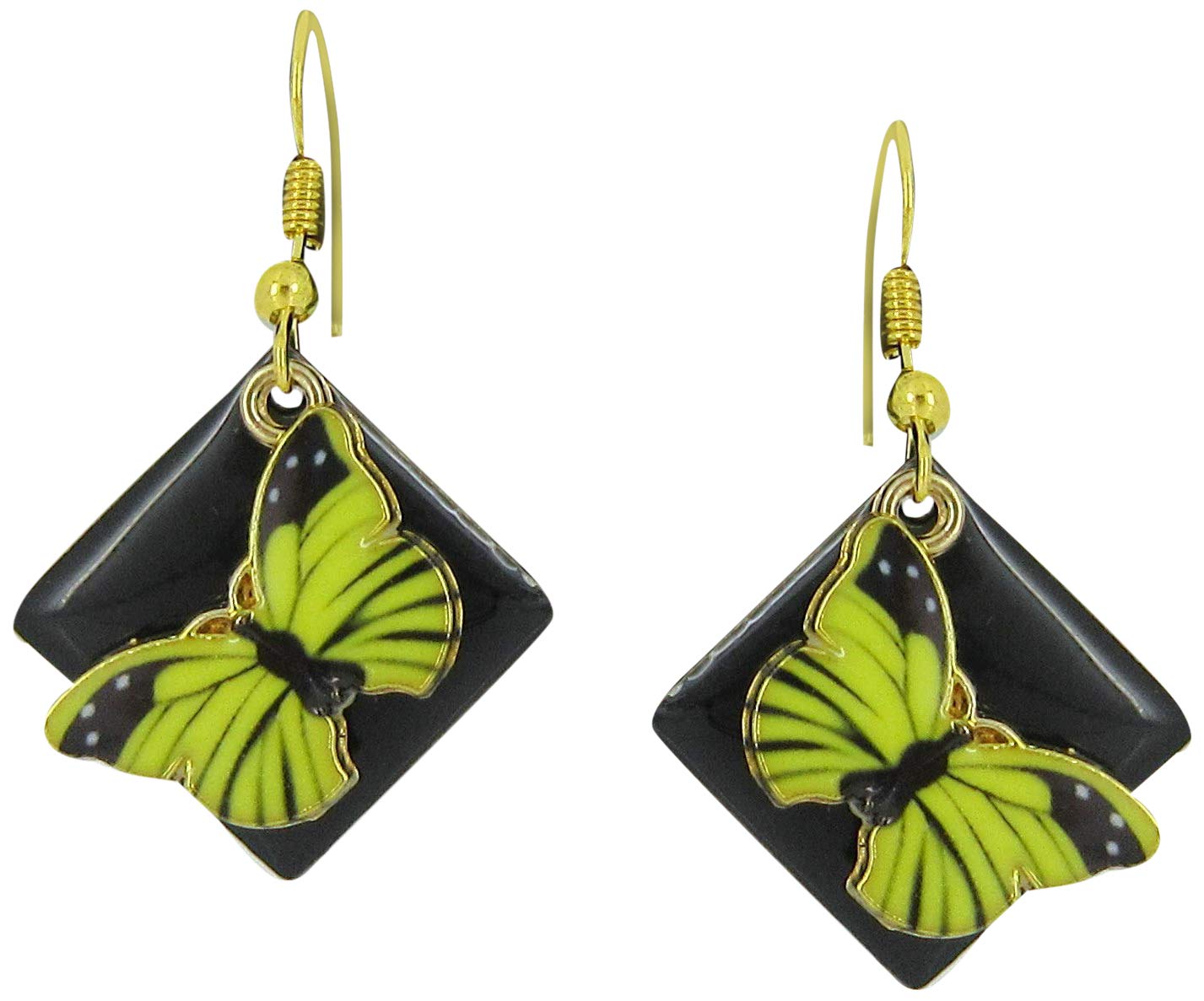 Gold-tone Enamel Butterfly Charm Dangle Earrings