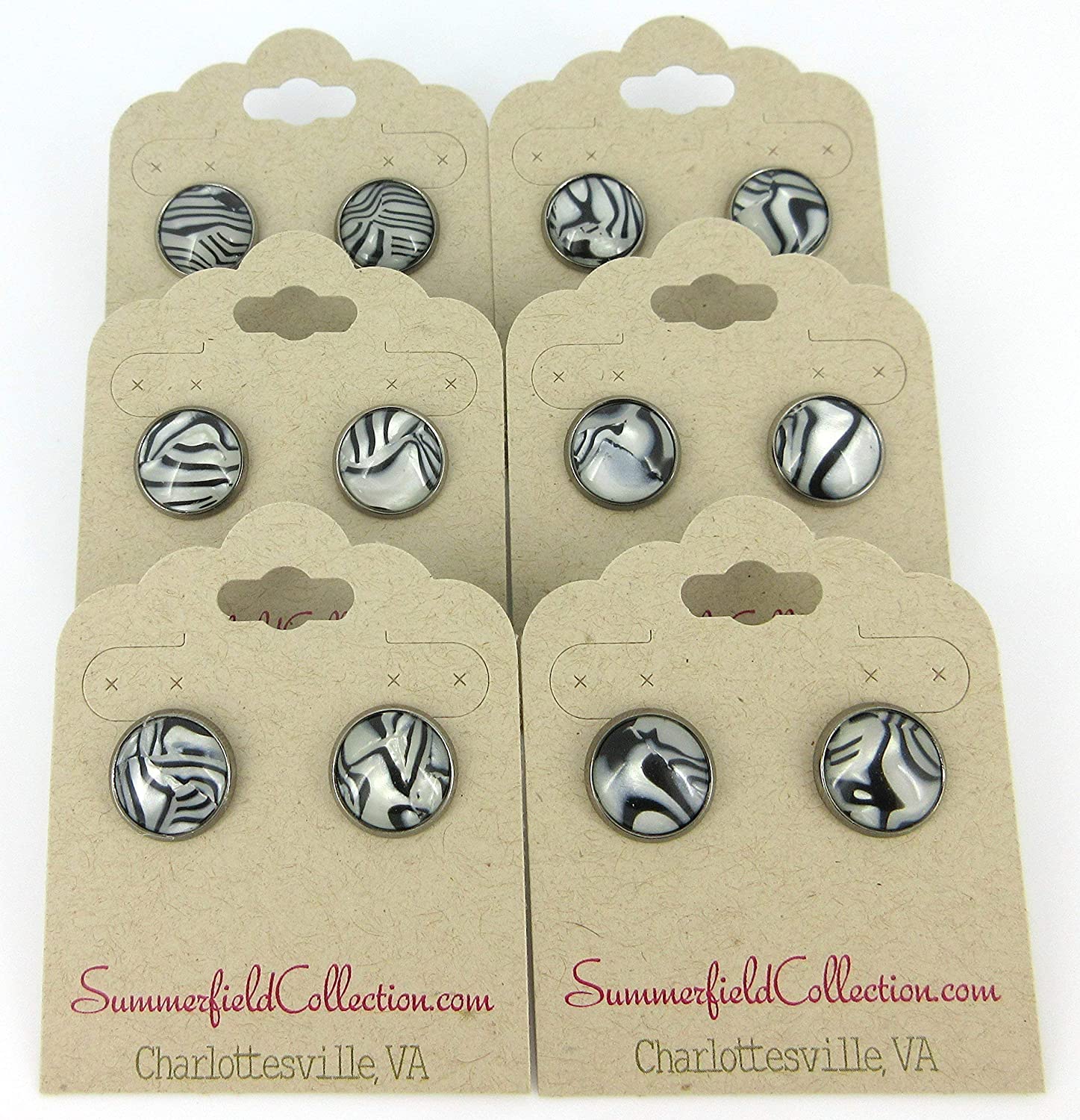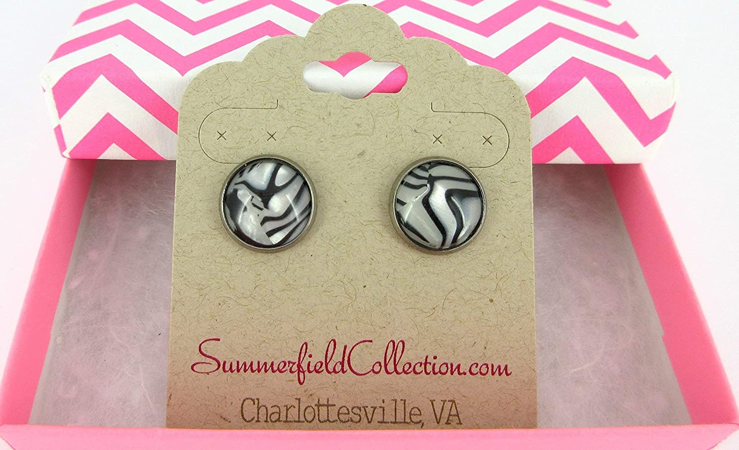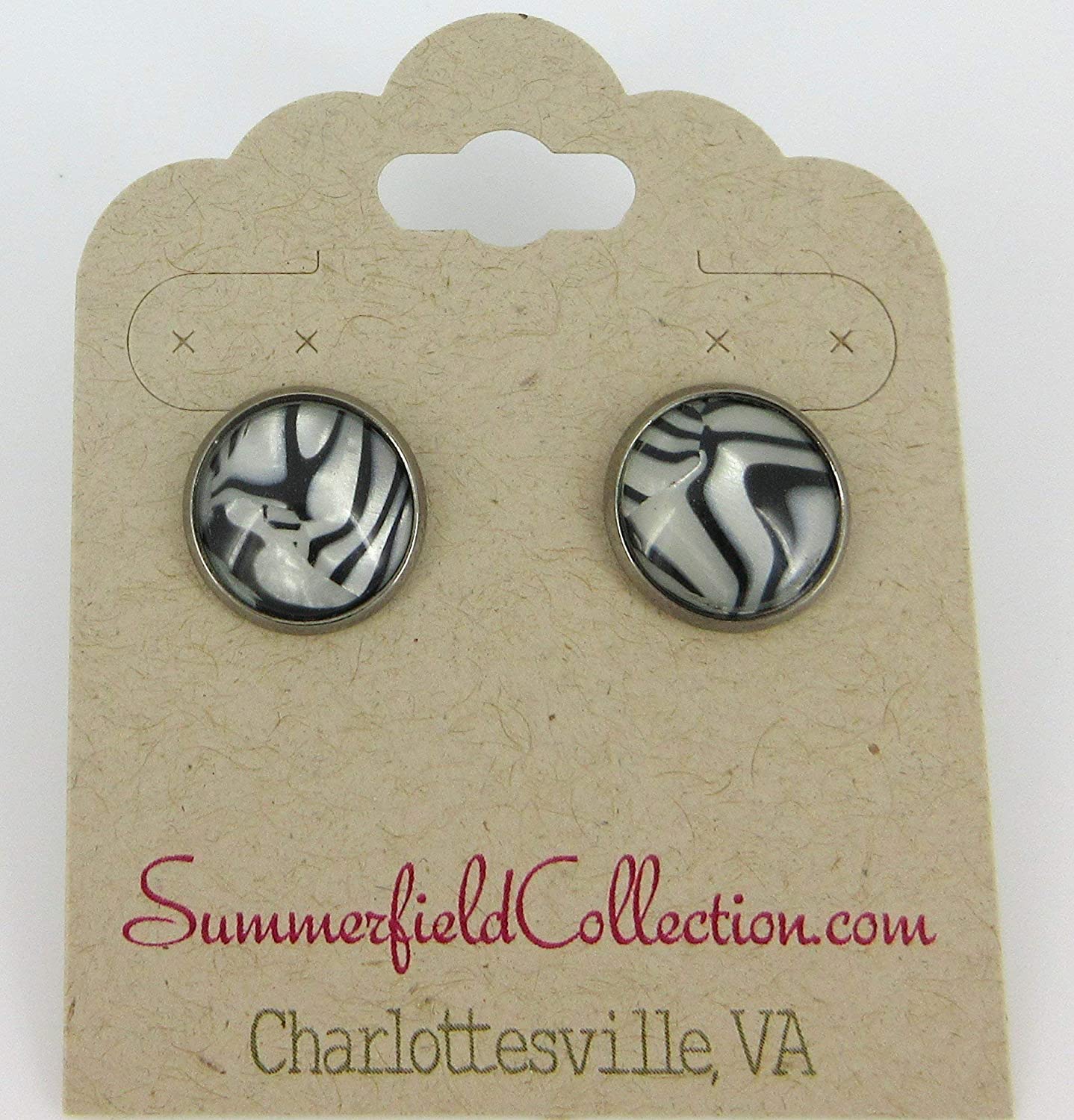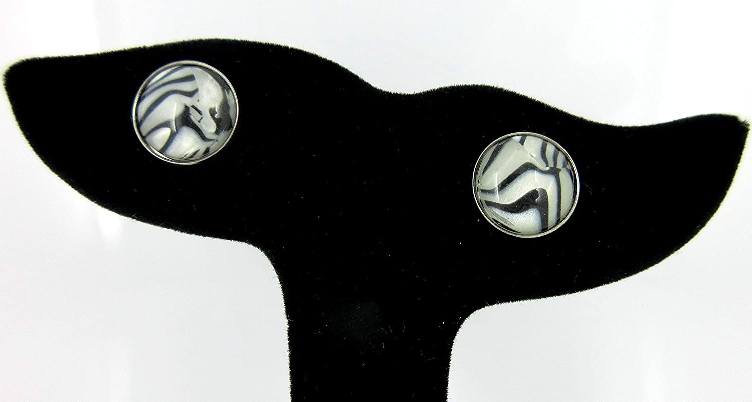Hematite-tone Black and White Zebra Print Stud Earrings 12mm