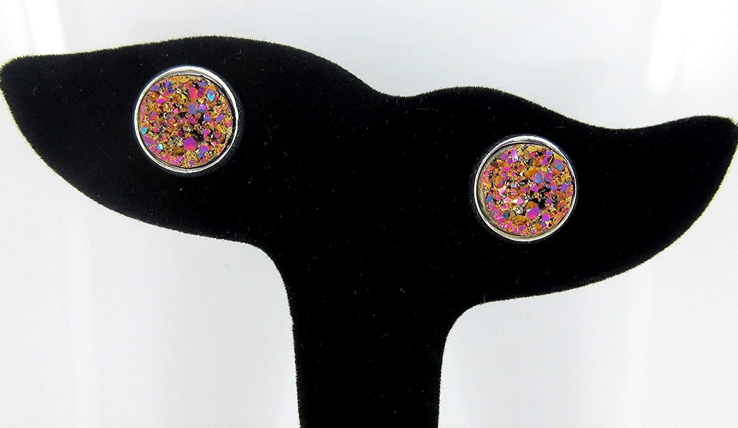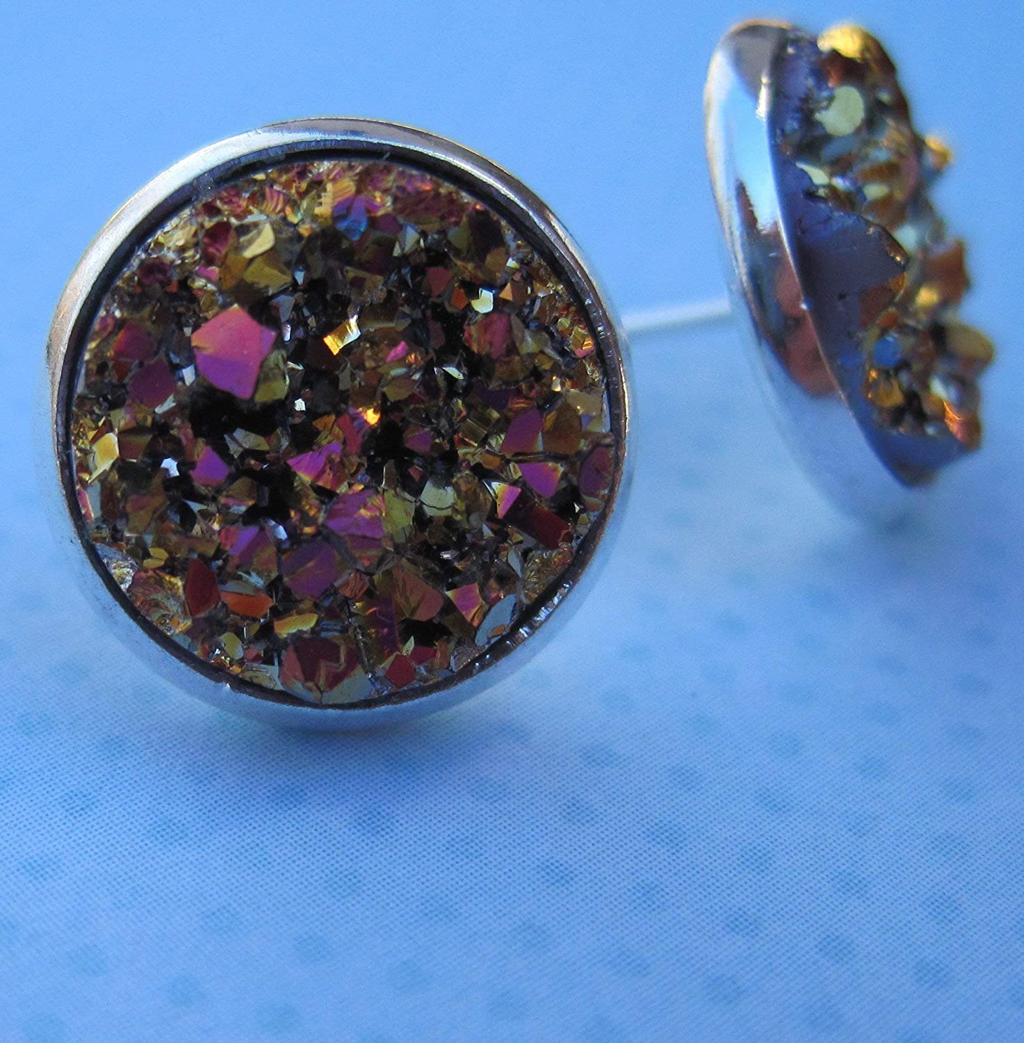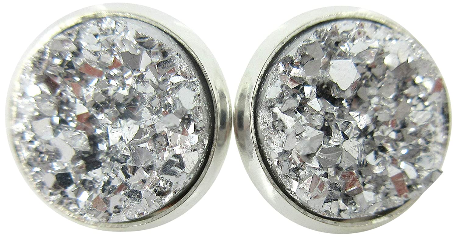 Silver-tone Metallic Faux Druzy Stone Stud Earrings 12mm