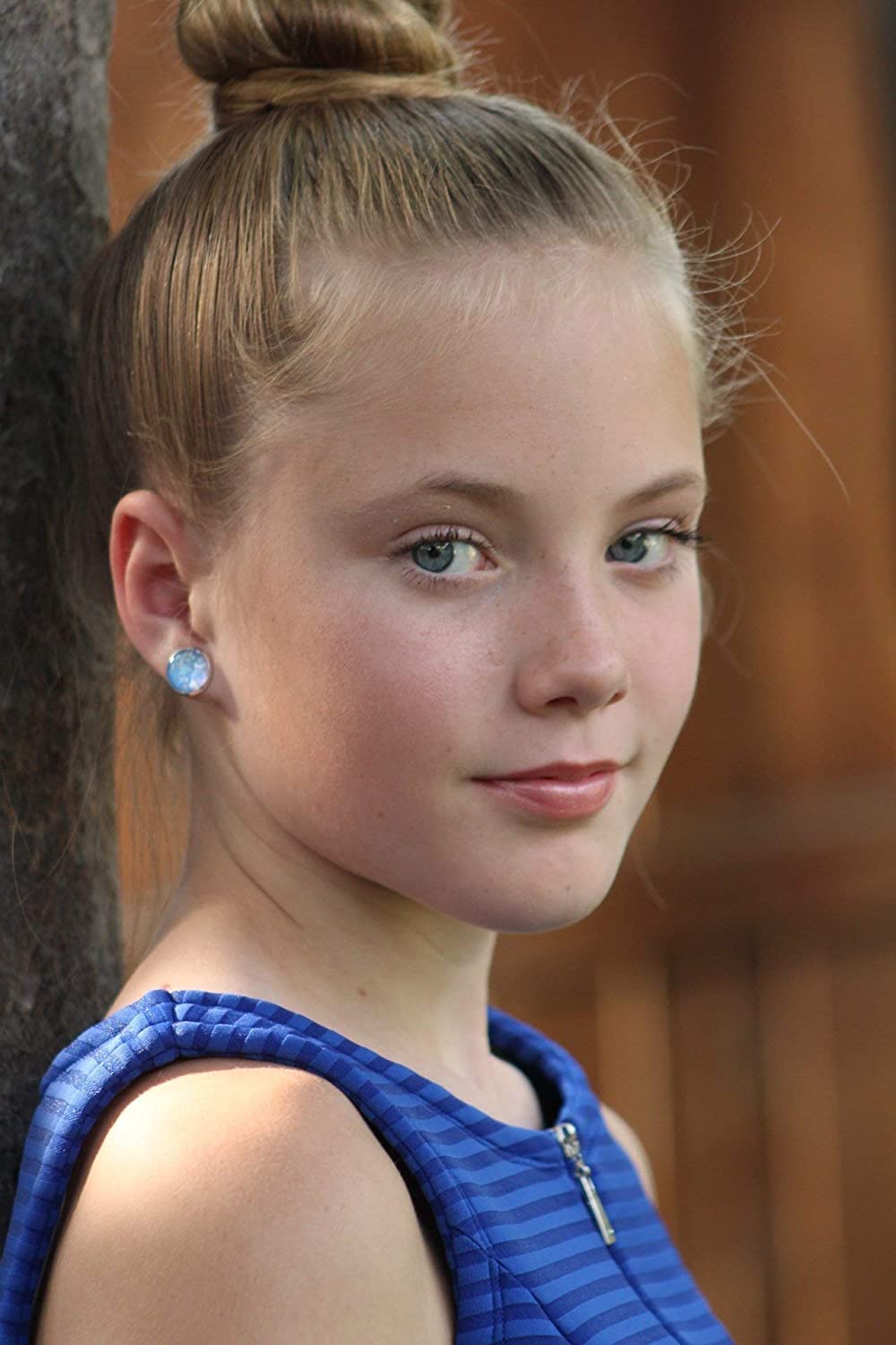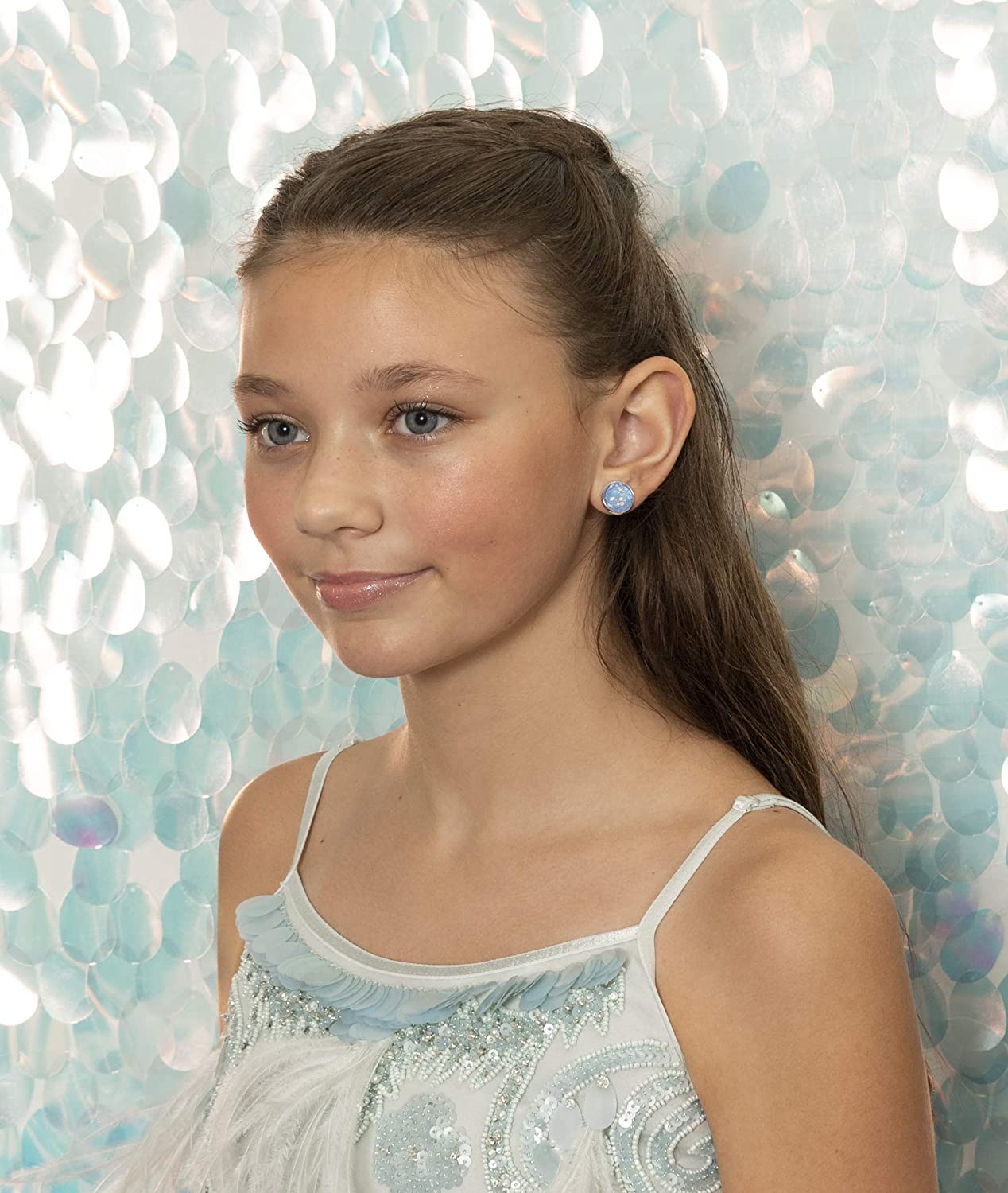 Silver-Tone Ice Blue and White Glitter Glass Stud Earrings 12mm