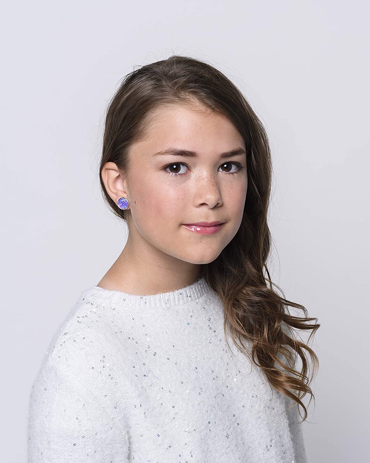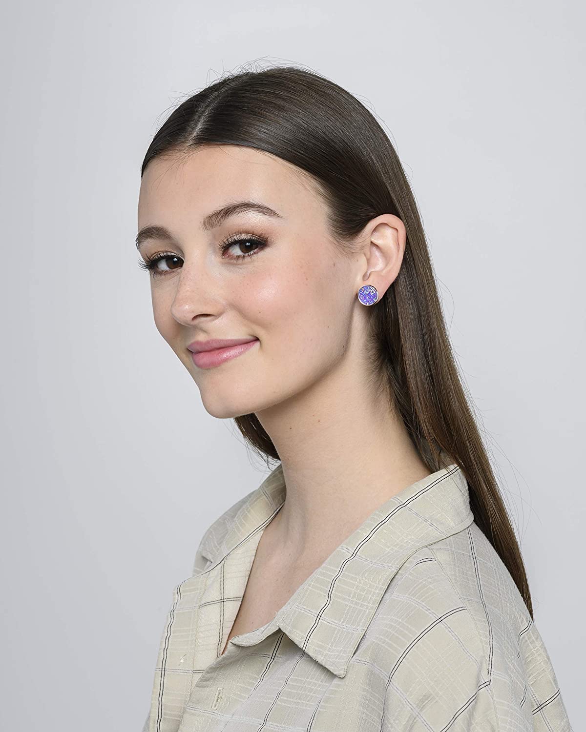 These fun earrings are set in an shiny silver-tone round bezel setting. Appx. 1/2" diameter. Post closure. Comes in a gift box for easy gift-giving. They're so fun though, you might be tempted to keep them for yourself! Nickel, lead and cadmium safe.