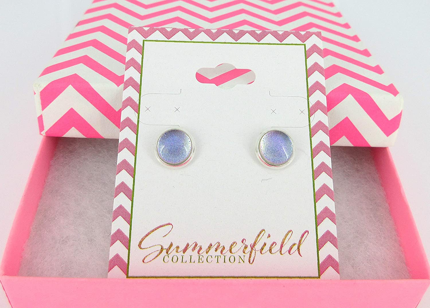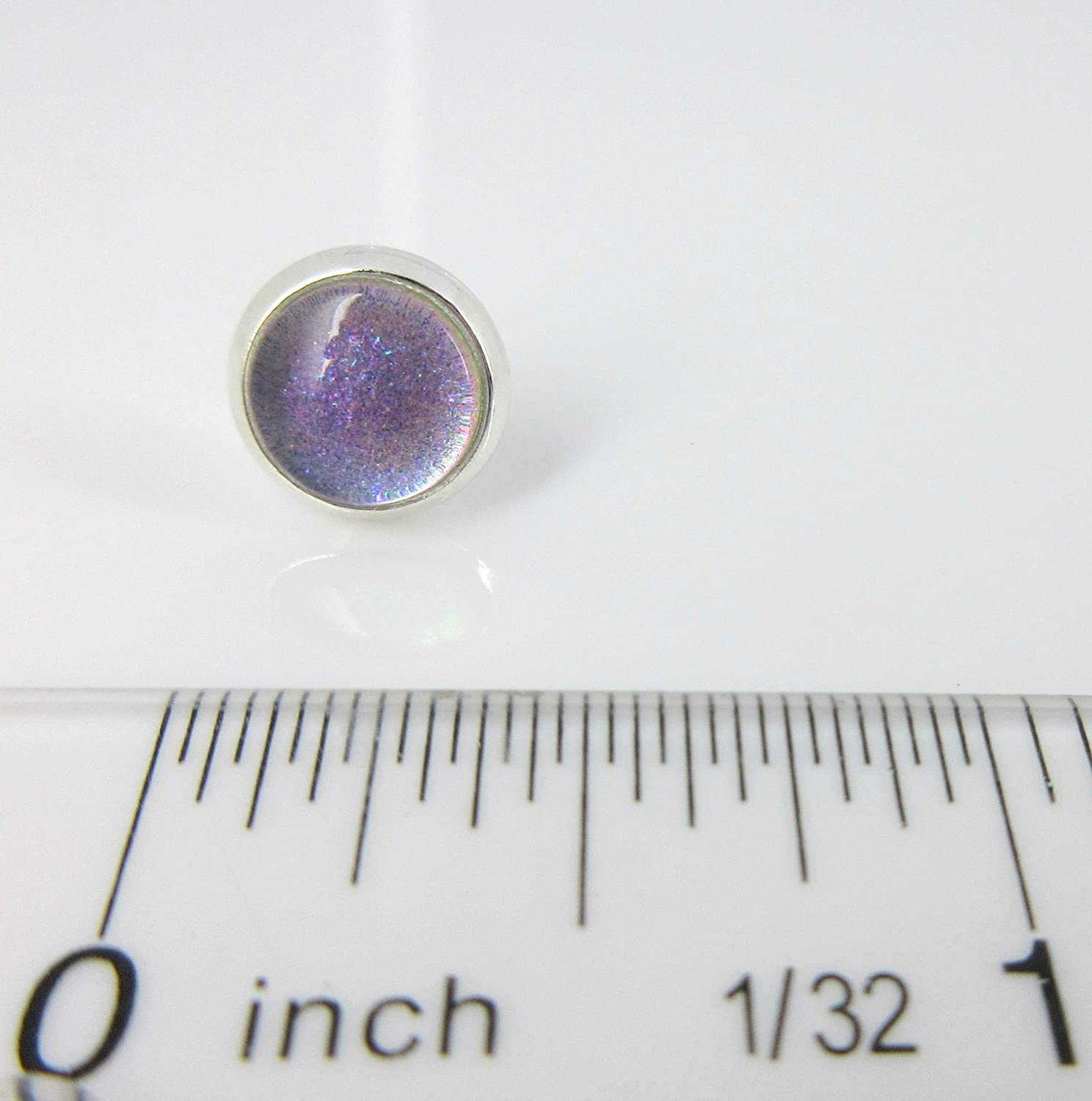 Silver-tone Pastel Purple Color Shift Glitter Glass Stud Earrings Hand-painted 8mm