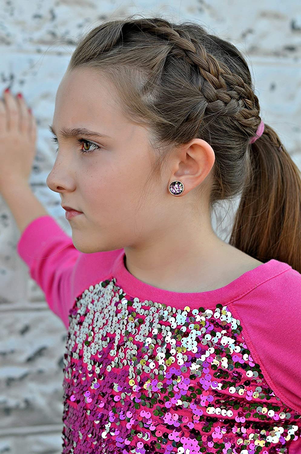 Silver-tone Preppy Mix Glitter Glass Stud Earrings Hand-painted 12mm