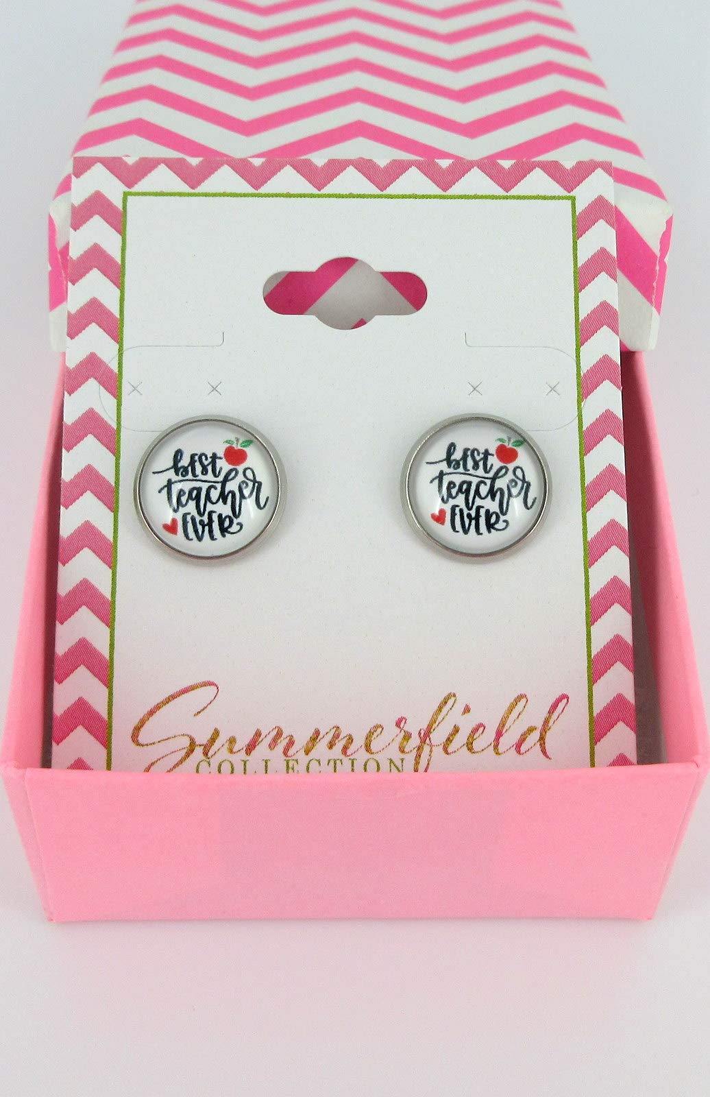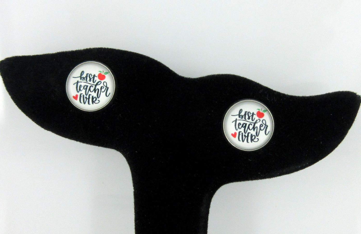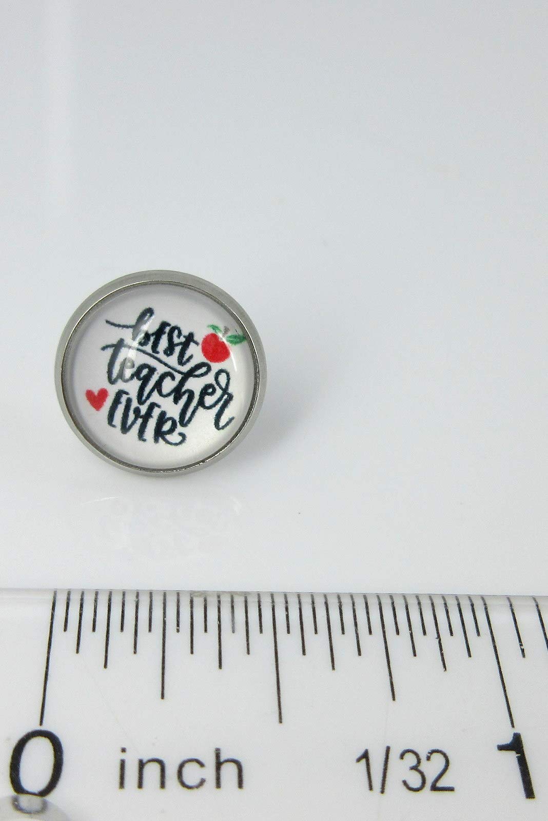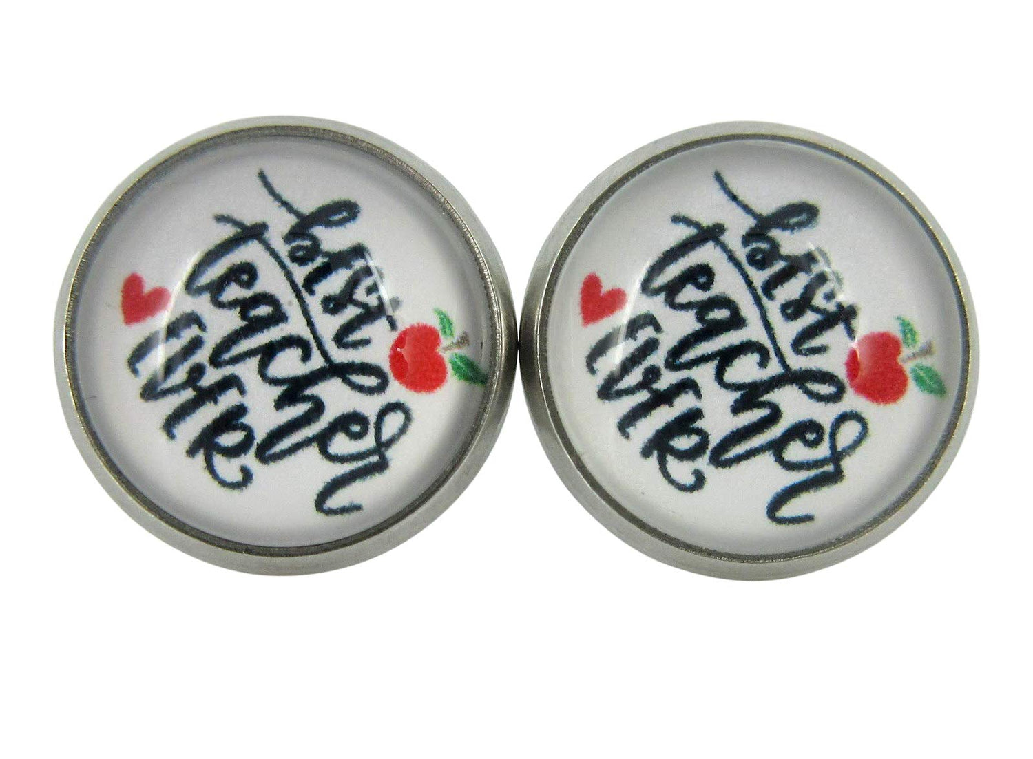 Stainless Steel Teacher Print Glass Stud Earrings 12mm (Best Teacher Ever/Apple)