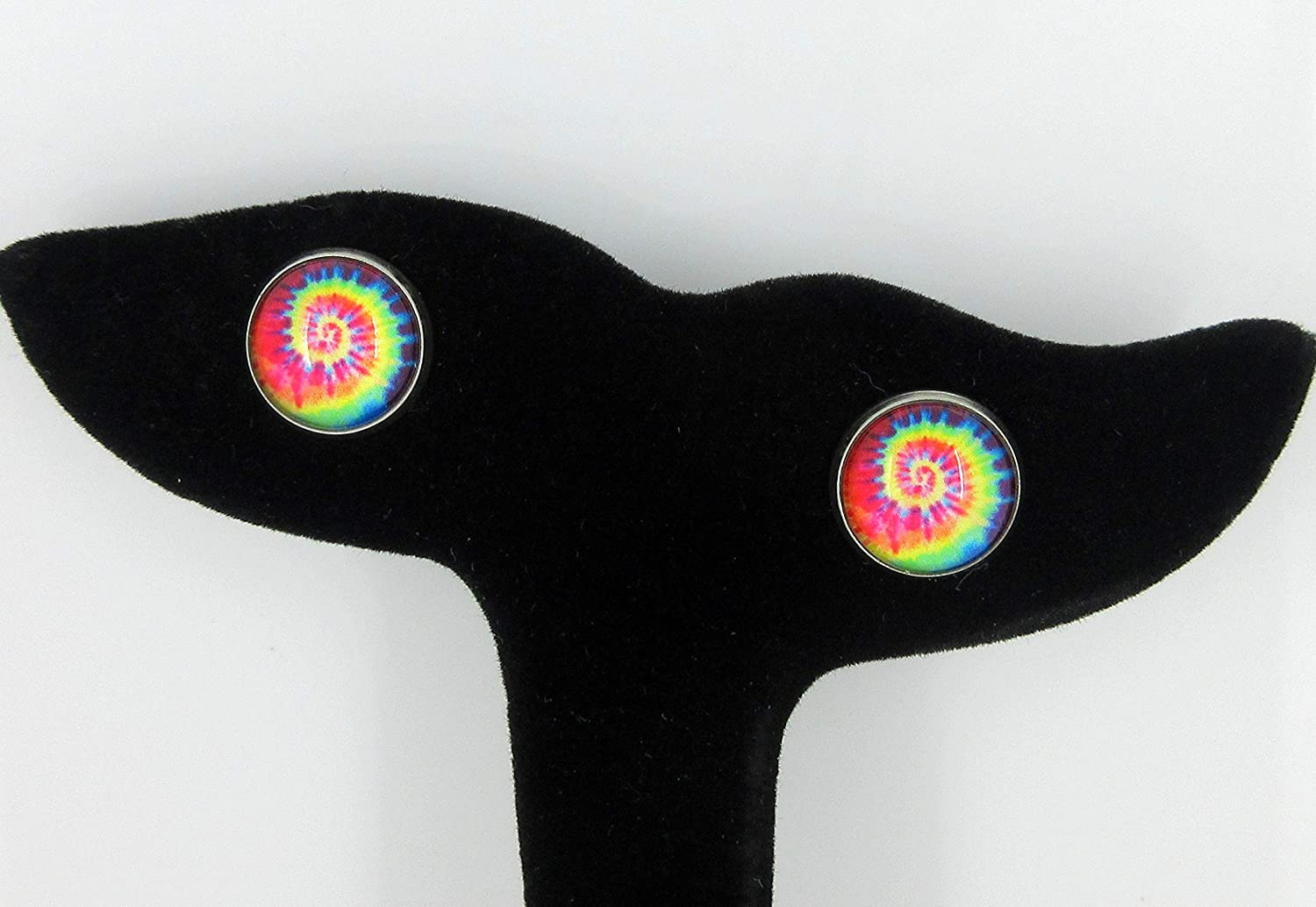 The glass cabochon diameter is appx. 1/2". Set in a round, stainless steel, bezel setting. Hypoallergenic for sensitive ears. In stock and ready to ship out. Comes in a gift box for easy gift-giving. They're so unique though, you might be tempted to keep them for yourself! Nickel, lead and cadmium safe.