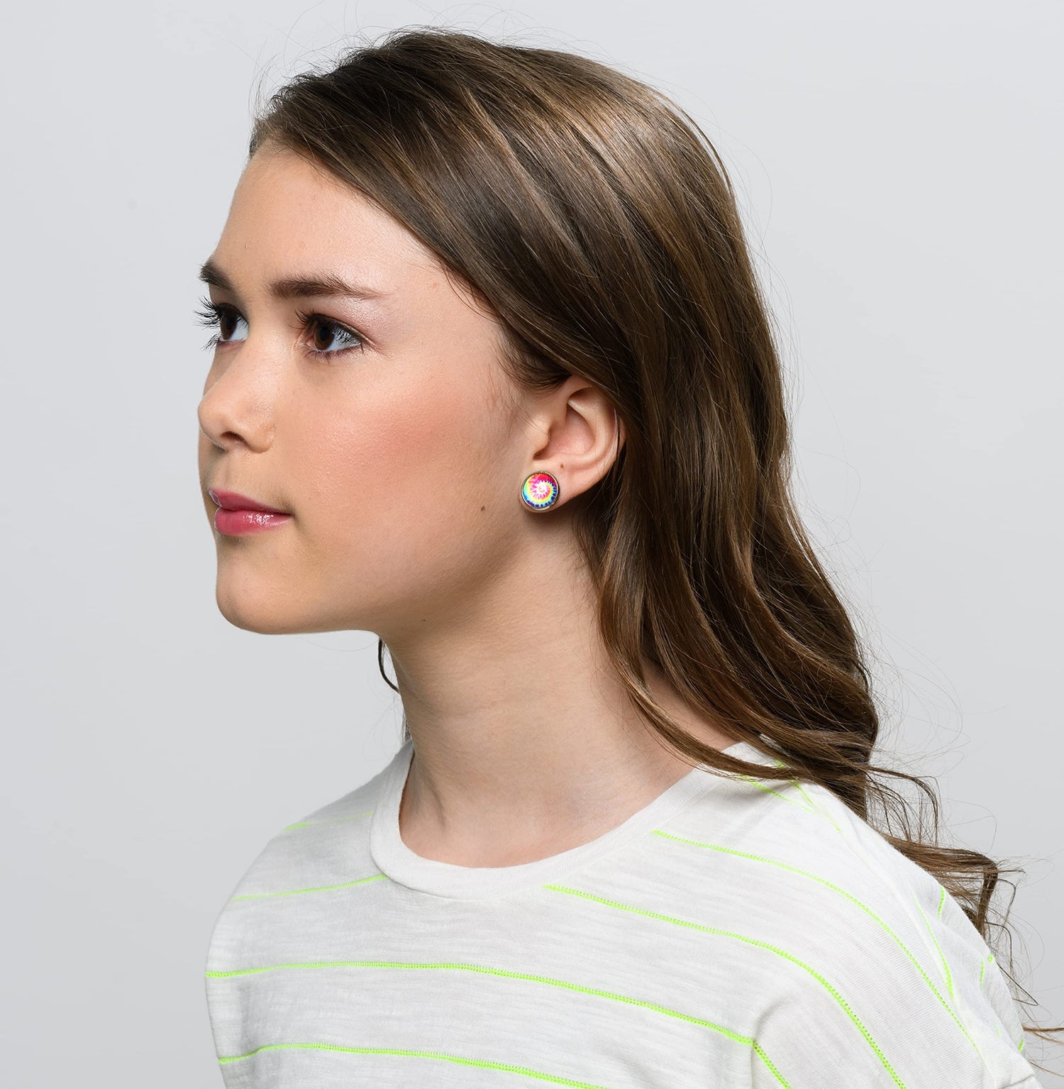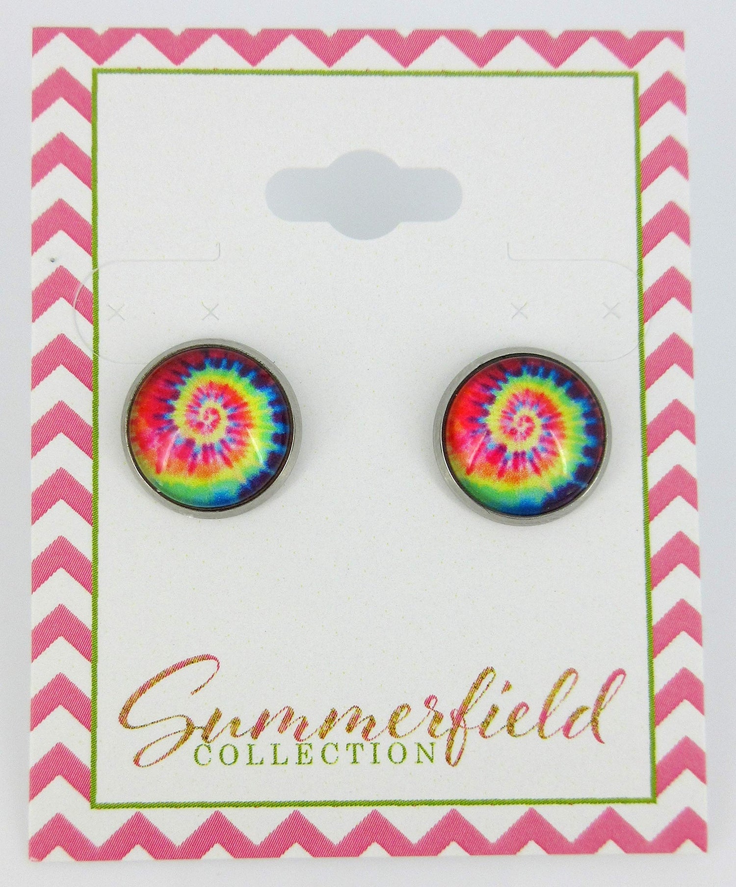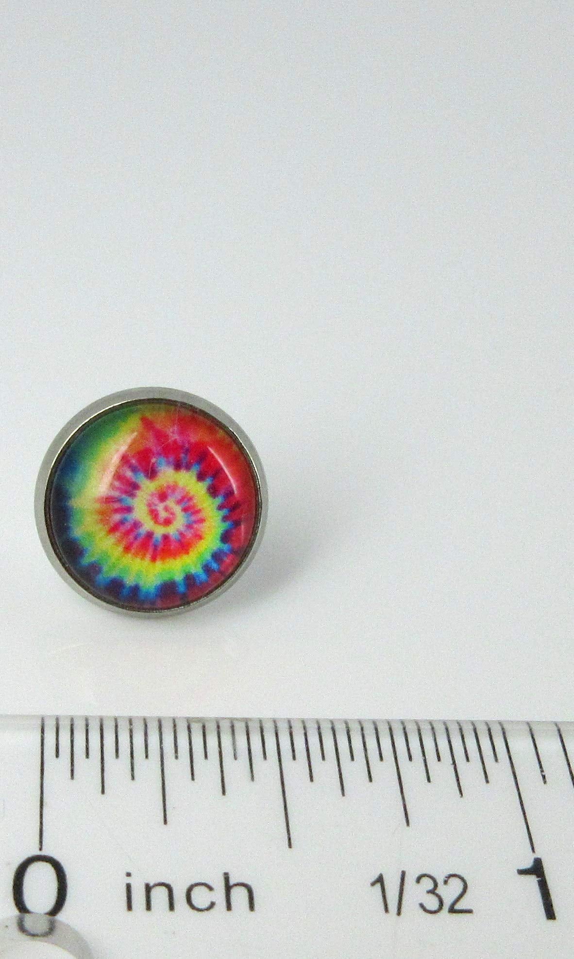 The glass cabochon diameter is appx. 1/2". Set in a round, stainless steel, bezel setting. Hypoallergenic for sensitive ears. In stock and ready to ship out. Comes in a gift box for easy gift-giving. They're so unique though, you might be tempted to keep them for yourself! Nickel, lead and cadmium safe.