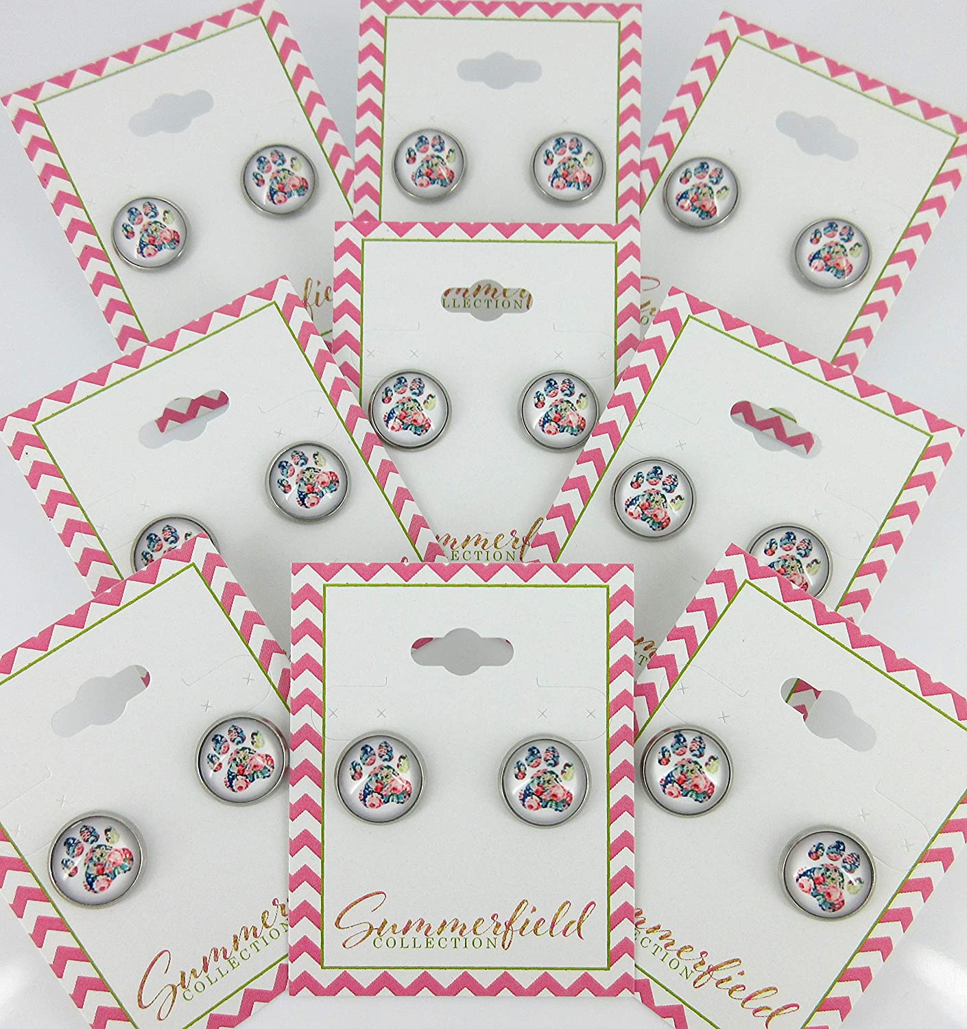 Increase quantity for Stainless Steel White and Flower Paw Print Glass Stud Earrings 12mm
