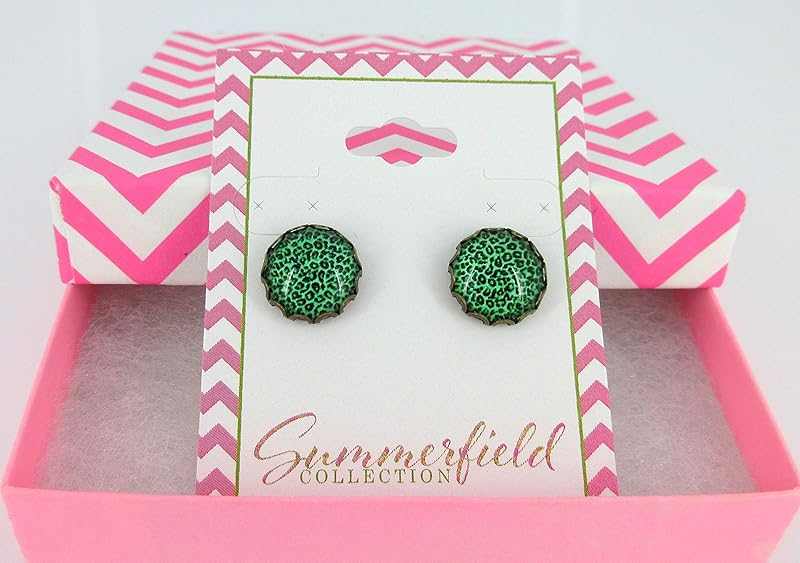 Summerfield Collection Antiqued Gold-tone Animal Print Glass Stud Earrings 12mm (Grass Green)