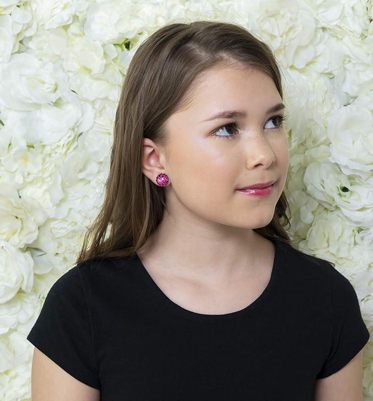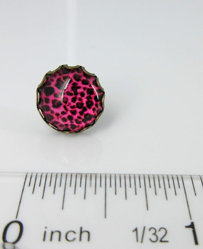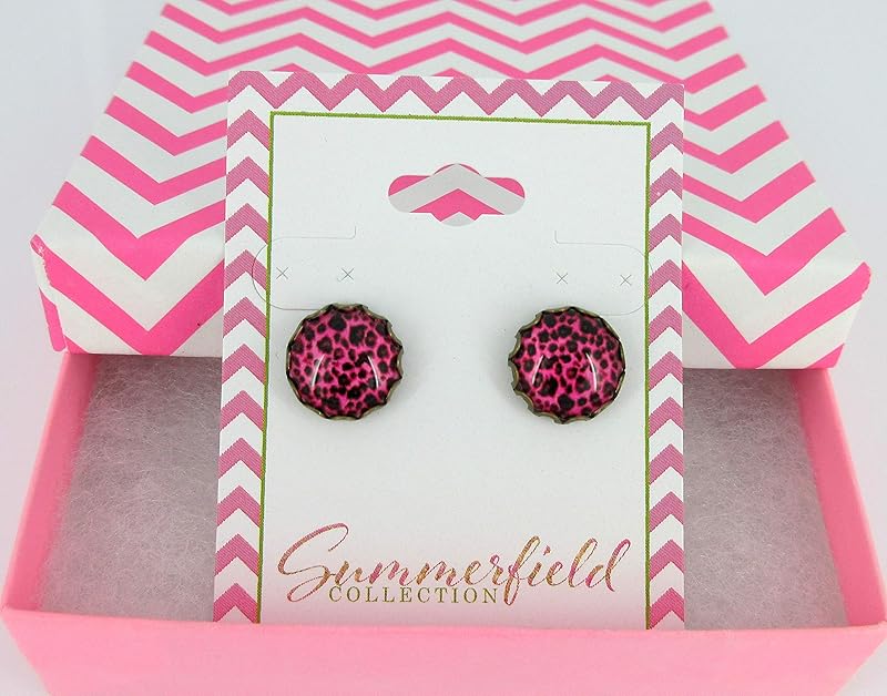 Summerfield Collection Antiqued Gold-tone Animal Print Glass Stud Earrings 12mm (Hot Pink)