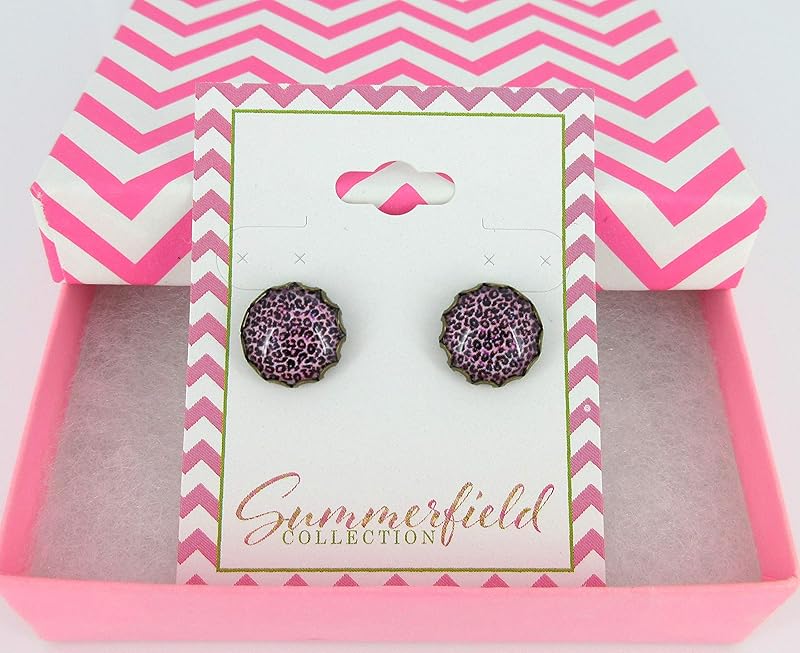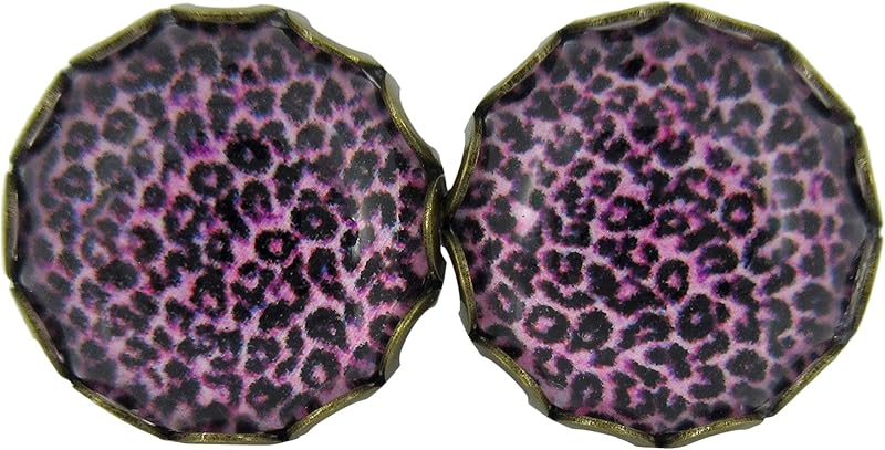 Summerfield Collection Antiqued Gold-tone Animal Print Glass Stud Earrings 12mm (Pink/Purple)
