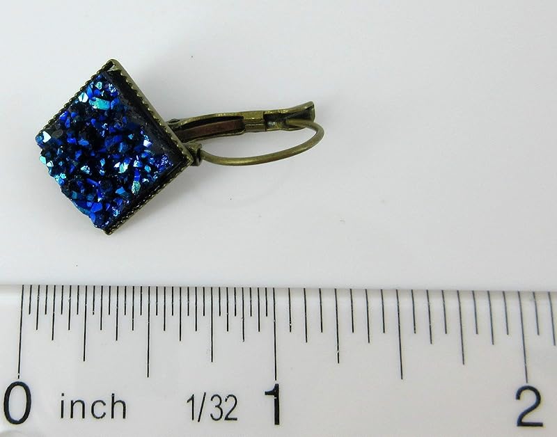 Summerfield Collection Antiqued Gold-tone Geometric Square Faux Druzy Stone Lever-back Drop Earrings (Blue Metallic)