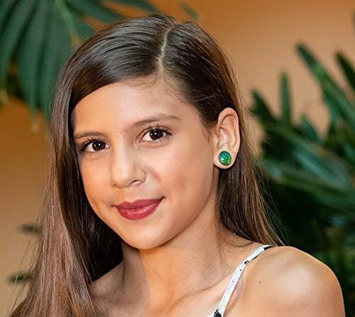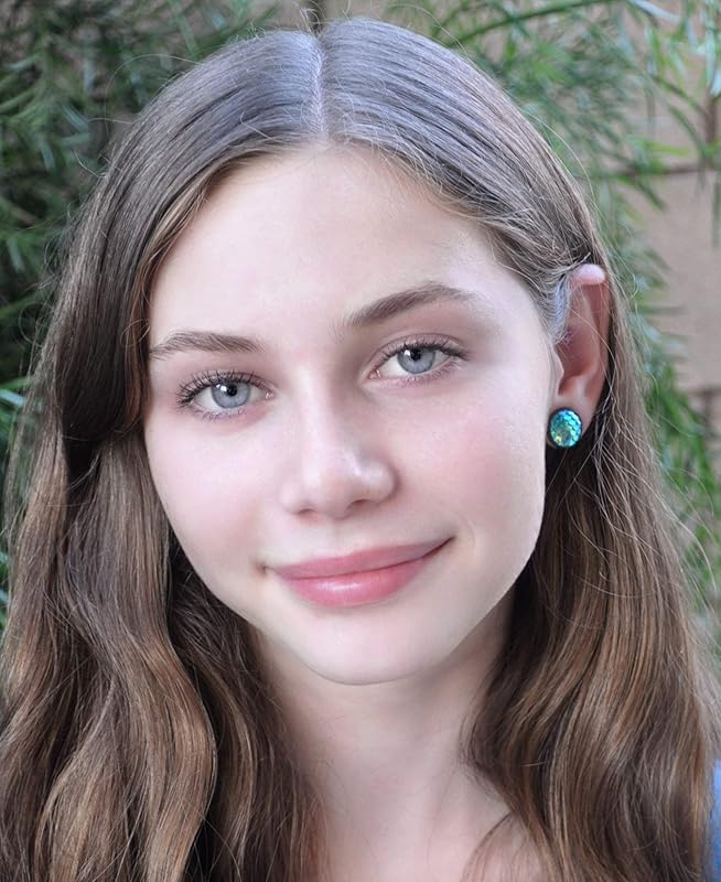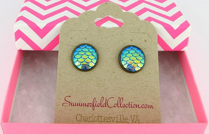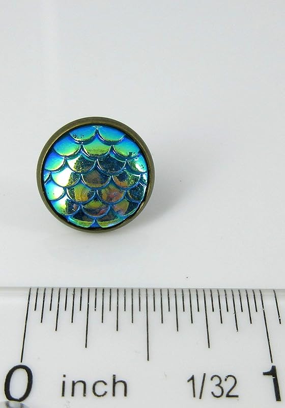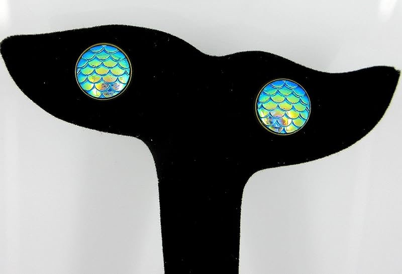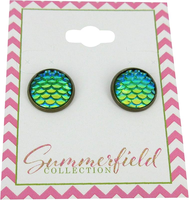 Summerfield Collection Antiqued Gold-tone Metallic Mermaid Scale Stud Earrings 12mm (Green/Blue AB)