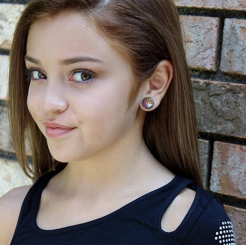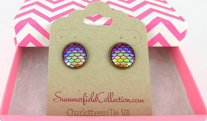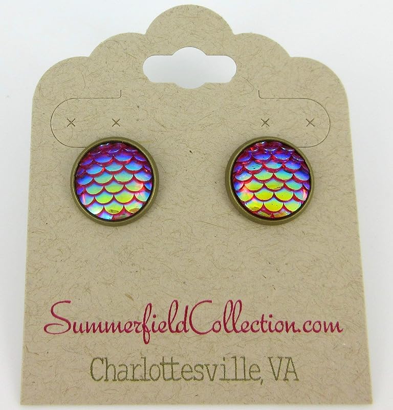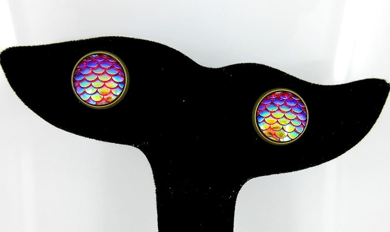 Summerfield Collection Antiqued Gold-tone Metallic Mermaid Scale Stud Earrings 12mm (Red AB)