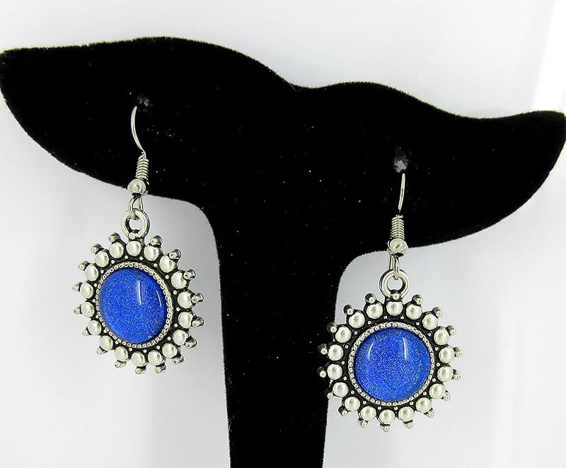 Summerfield Collection Antiqued Silver-tone Royal Blue Glitter Glass Dangle Earrings Hand-painted