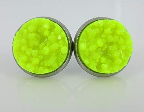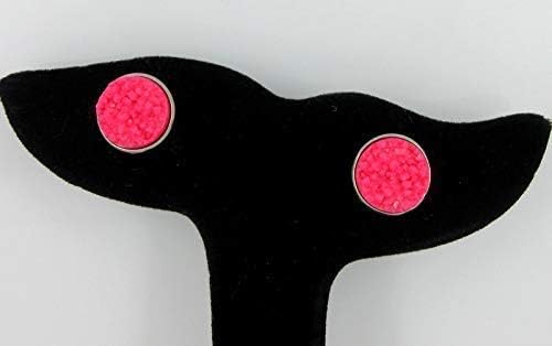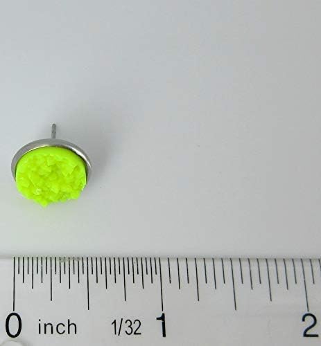 Summerfield Collection Duo Neon Stud Earrings Stainless Steel Faux Druzy Stone 12mm Set (Pink/Yellow)