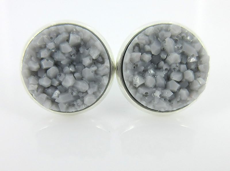 Summerfield Collection Duo Stud Earrings Silver-tone Gray and Eggplant Faux Druzy Stone 12mm Set