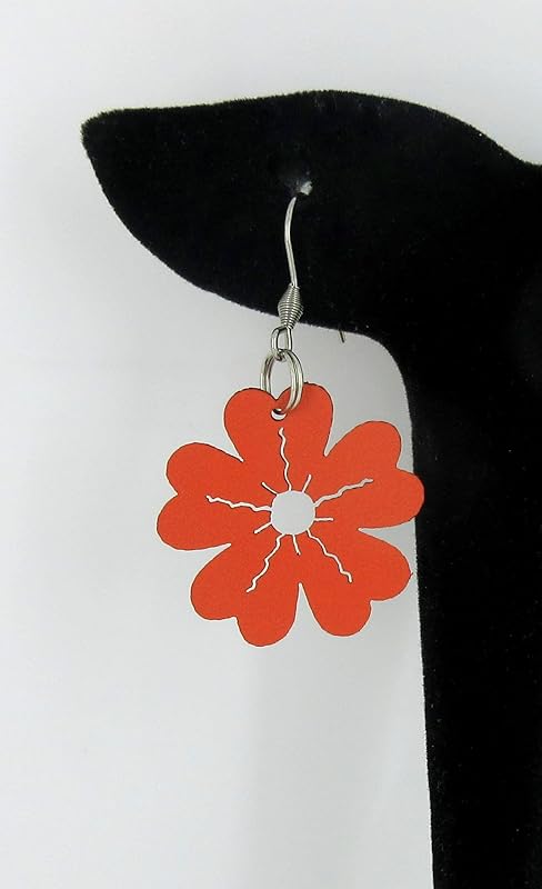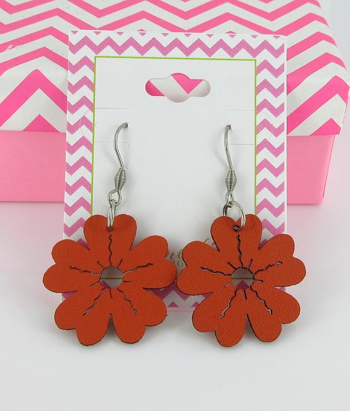 Summerfield Collection Flower Faux Leather Dangle Earrings Stainless Steel Brown Orange