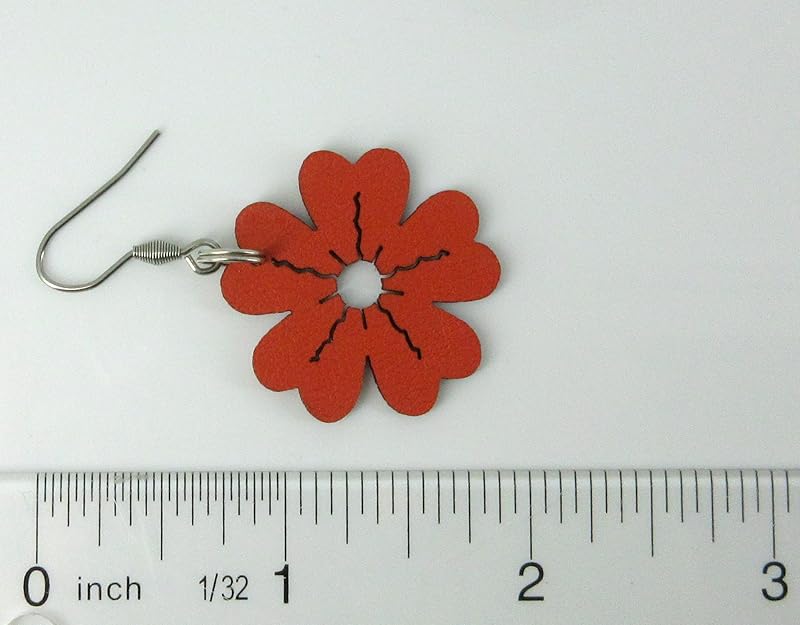 Pretty and lightweight. Vegan and faux leather. They are appx. 1.25" W at the largest point. They have a total drop of appx. 2" L. Stainless steel fish hook closure. Hypoallergenic for sensitive ears. In stock and ready to ship out. Comes in a gift box for easy gift-giving. They're so unique though, you might be tempted to keep them for yourself!