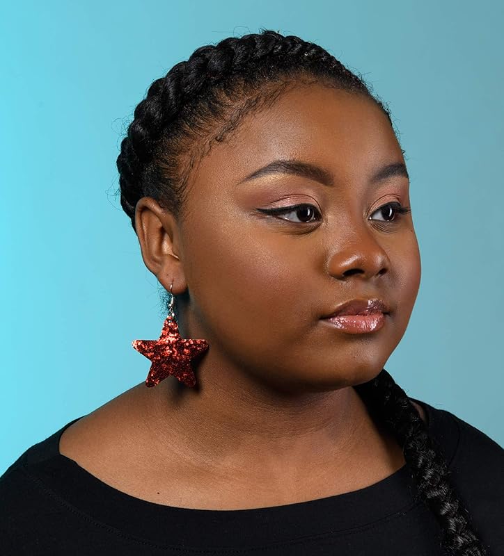 Summerfield Collection Glitter Faux Leather Large Star Dangle Earrings (Red)