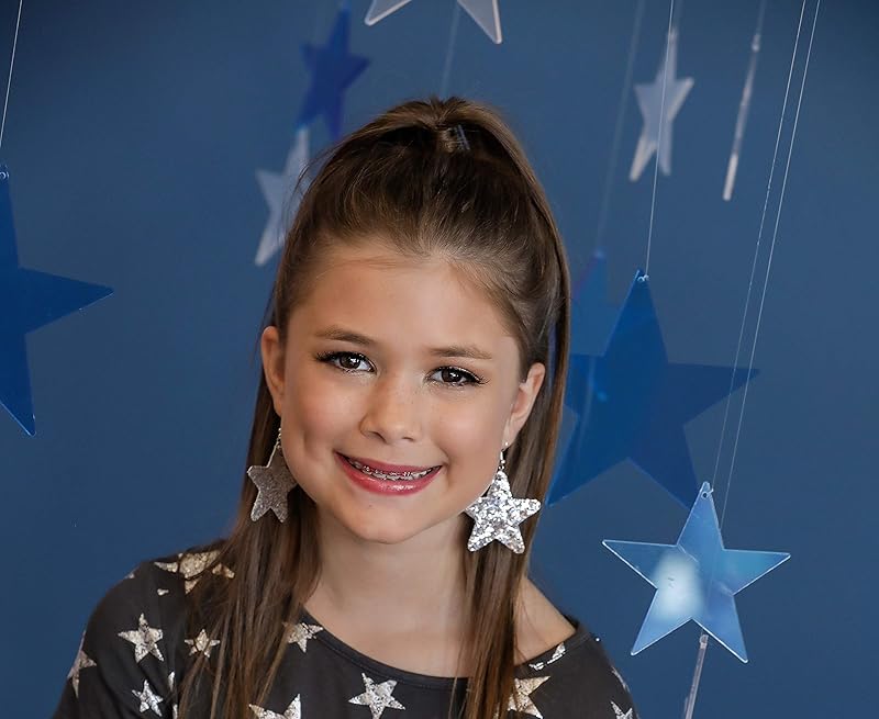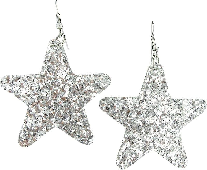 Summerfield Collection Glitter Faux Leather Large Star Dangle Earrings (Silver)