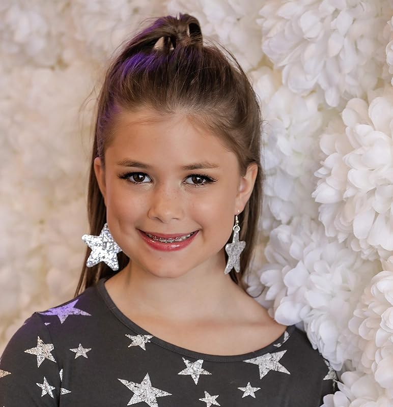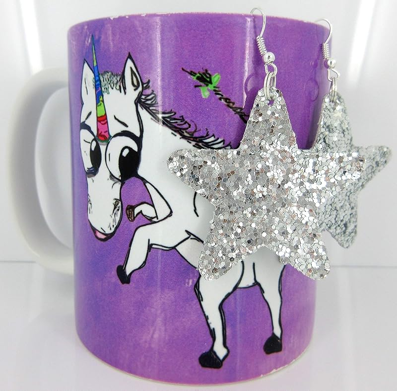 So much fun sparkle! Glitter design is on both sides of these larger statement earrings. Really lightweight. Vegan and faux leather. They are appx. 1 7/8" W at the largest point. They have a total drop of appx. 2.75" L. Silver-tone fish hook closure. In stock and ready to ship out. Comes in a gift box for easy gift-giving. They're so unique though, you might be tempted to keep them for yourself!