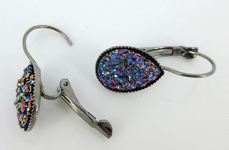 Summerfield Collection Hematite-tone Unicorn Tear Faux Druzy Stone Lever-back Drop Earrings 12mm