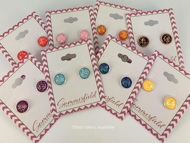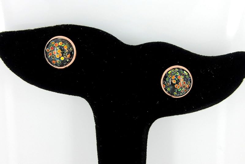 Summerfield Collection Rose Gold-tone Black and Green Iridescent Glitter Resin Stud Earrings 10mm