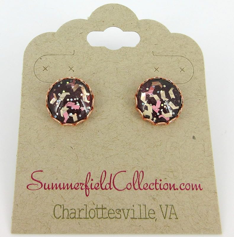 Summerfield Collection Rose Gold-tone Chevron Flake Glitter Glass Stud Earrings 12mm Hand-painted