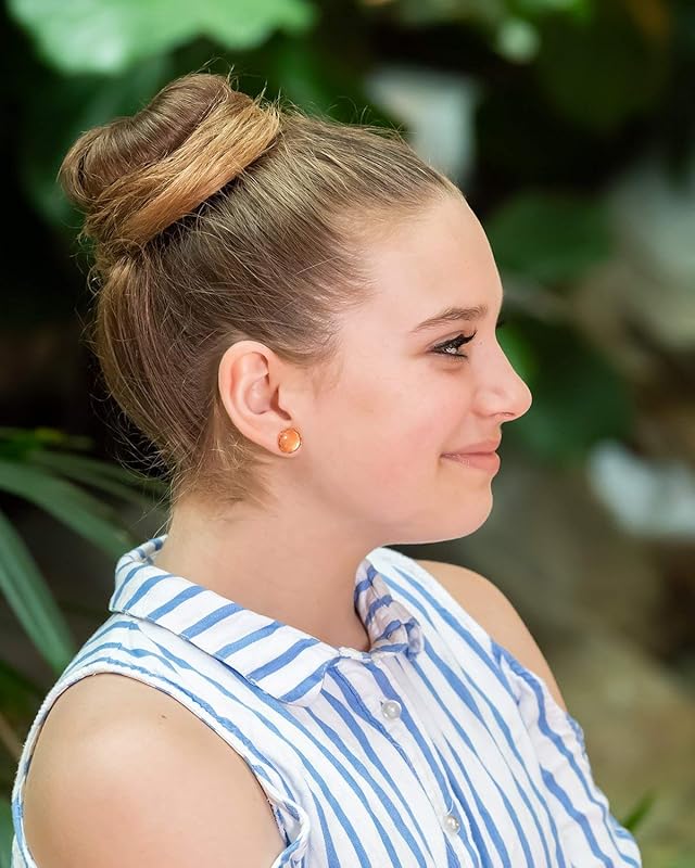 These fun glass stud earrings are hand-painted with a shimmery metallic copper paint. The diameter is appx. 1/2". Set in a round, shiny, rose gold-tone crown bezel setting. In stock and ready to ship out. Comes in a gift box for easy gift-giving. They're so unique though, you might be tempted to keep them for yourself!