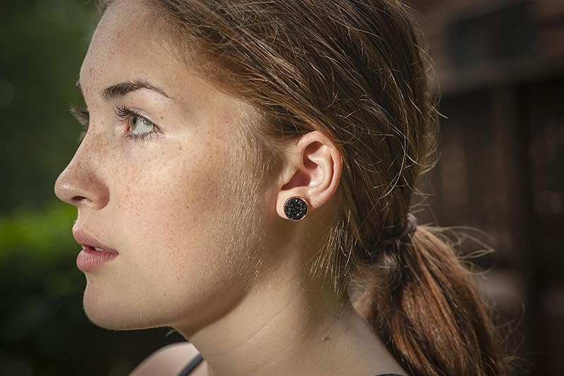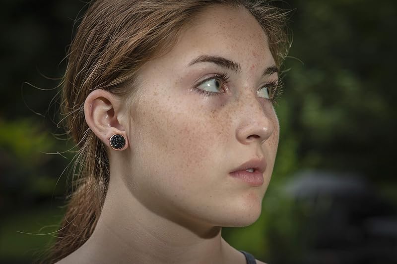 Summerfield Collection Rose Gold-tone Faux Druzy Stone Stud Earrings 12mm (Black)