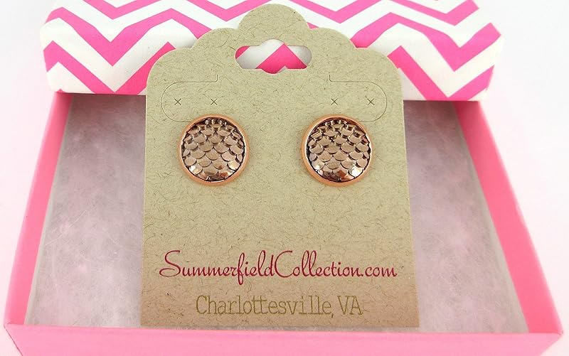 Summerfield Collection Rose Gold-tone Metallic Dragon Scale Stud Earrings 12mm Mermaid