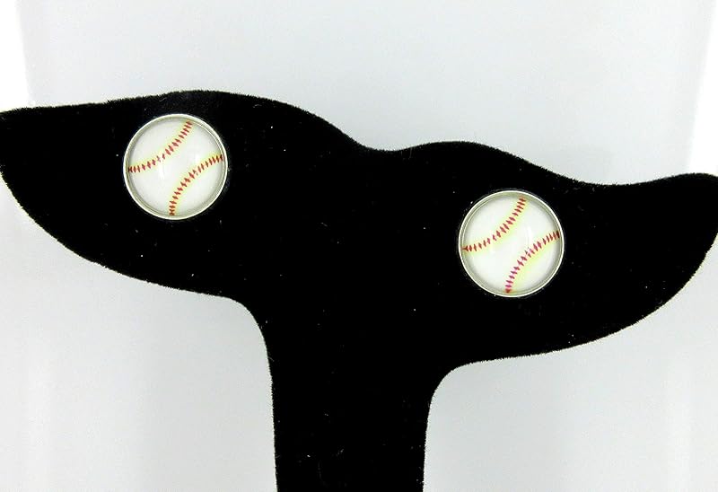 Summerfield Collection Silver-tone Baseball Print Glass Stud Earrings 12mm