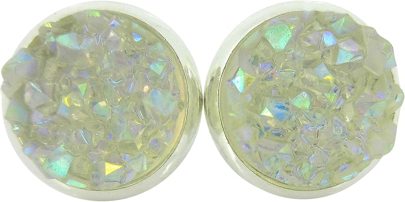 Summerfield Collection Silver-tone Faux Druzy Stone Stud Earrings 10mm (Clear AB)