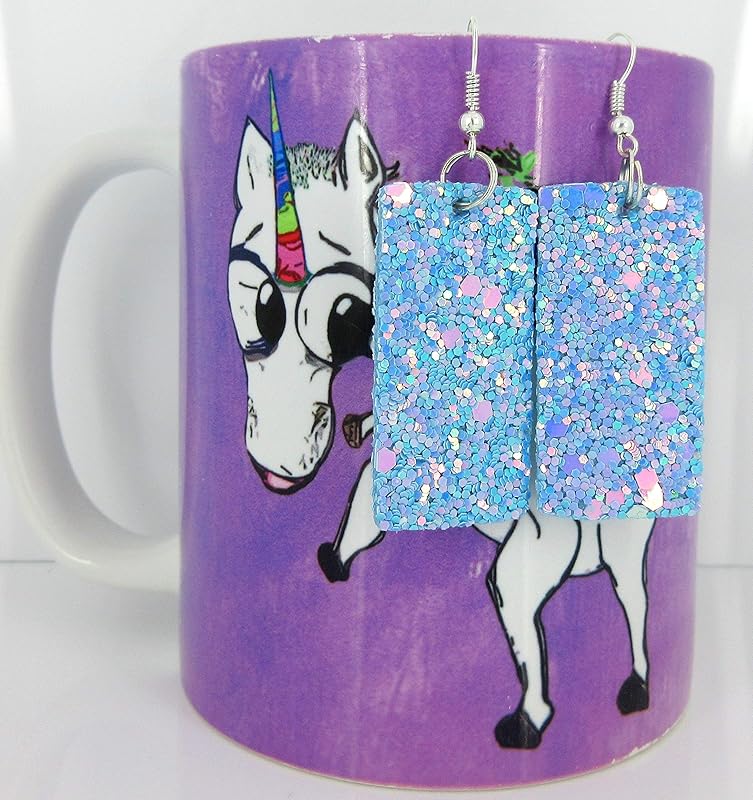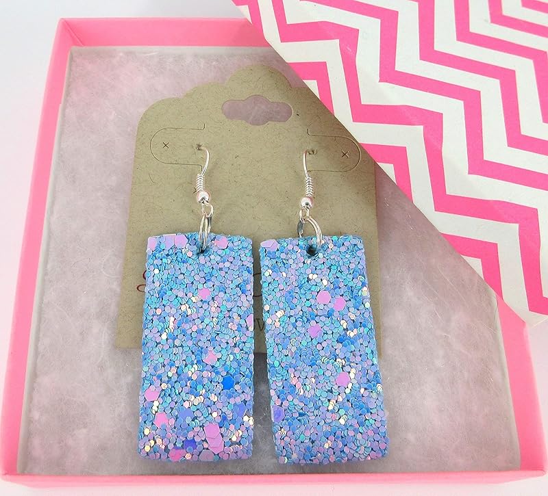 So much fun sparkle! Glitter design is on both sides of these larger statement earrings. Really lightweight. Vegan and faux leather. They are appx. 7/8" W at the largest point. They have a total drop of appx. 2.5" L. Silver-tone fish hook closure. In stock and ready to ship out. Comes in a gift box for easy gift-giving. They're so unique though, you might be tempted to keep them for yourself!