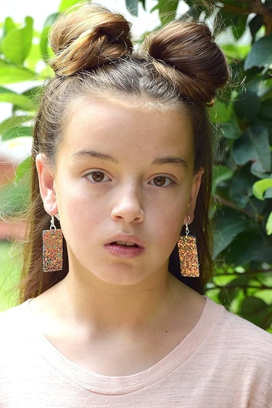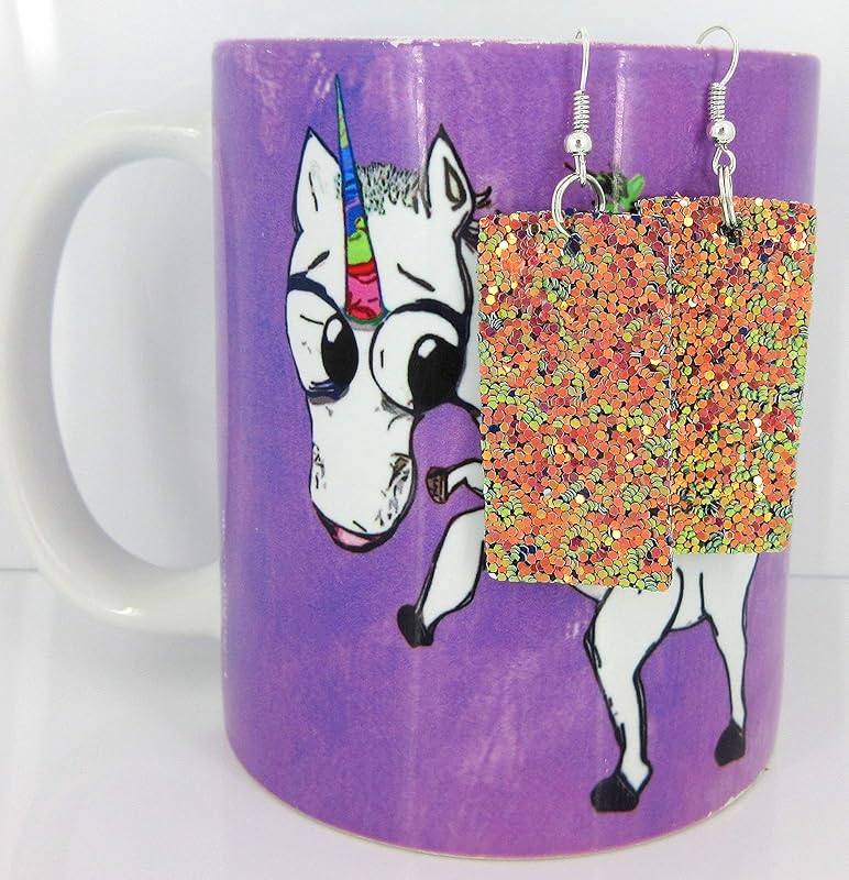 So much fun sparkle! Glitter design is on both sides of these larger statement earrings. Really lightweight. Vegan and faux leather. They are appx. 7/8" W at the largest point. They have a total drop of appx. 2.5" L. Silver-tone fish hook closure. In stock and ready to ship out. Comes in a gift box for easy gift-giving. They're so unique though, you might be tempted to keep them for yourself!