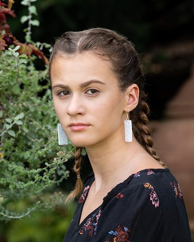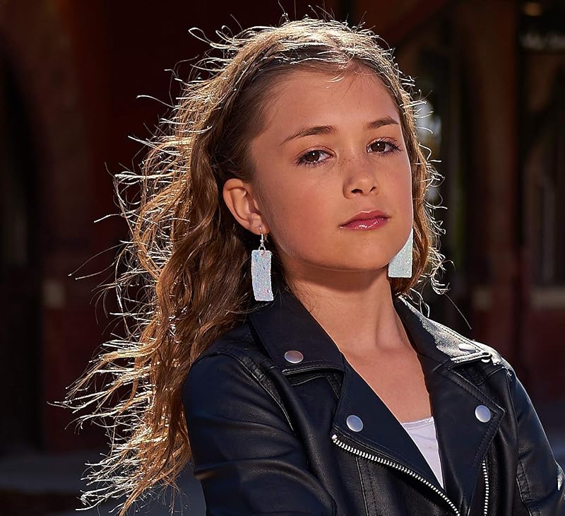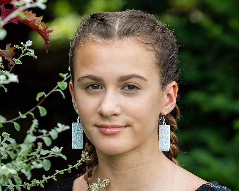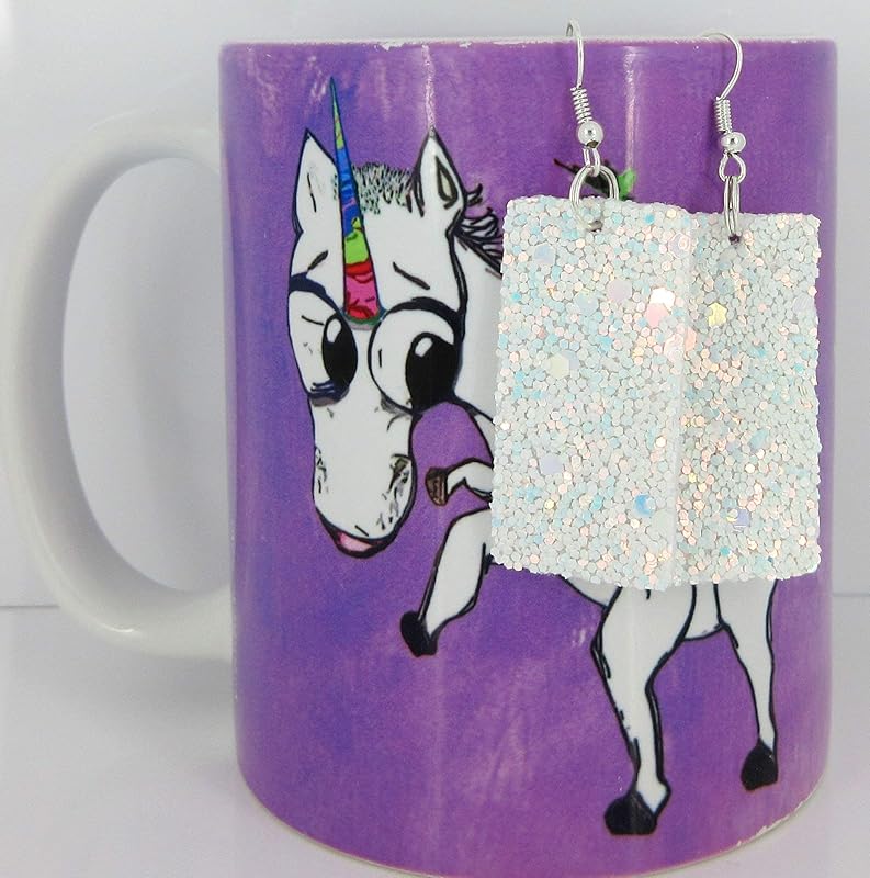 So much fun sparkle! Glitter design is on both sides of these larger statement earrings. Really lightweight. Vegan and faux leather. They are appx. 7/8" W at the largest point. They have a total drop of appx. 2.5" L. Silver-tone fish hook closure. In stock and ready to ship out. Comes in a gift box for easy gift-giving. They're so unique though, you might be tempted to keep them for yourself!