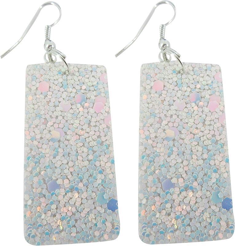 Summerfield Collection Silver-tone Glitter Faux Leather Large Rectangle Dangle Earrings (White)
