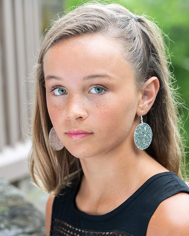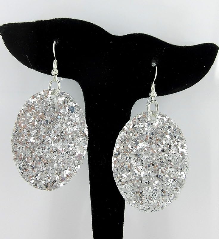 So much fun sparkle! Glitter design is on both sides of these larger statement earrings. Really lightweight. Vegan and faux leather. They are appx. 1.25" W at the largest point. They have a total drop of appx. 2" L. Silver-tone fish hook closure. In stock and ready to ship out. Comes in a gift box for easy gift-giving. They're so unique though, you might be tempted to keep them for yourself!
