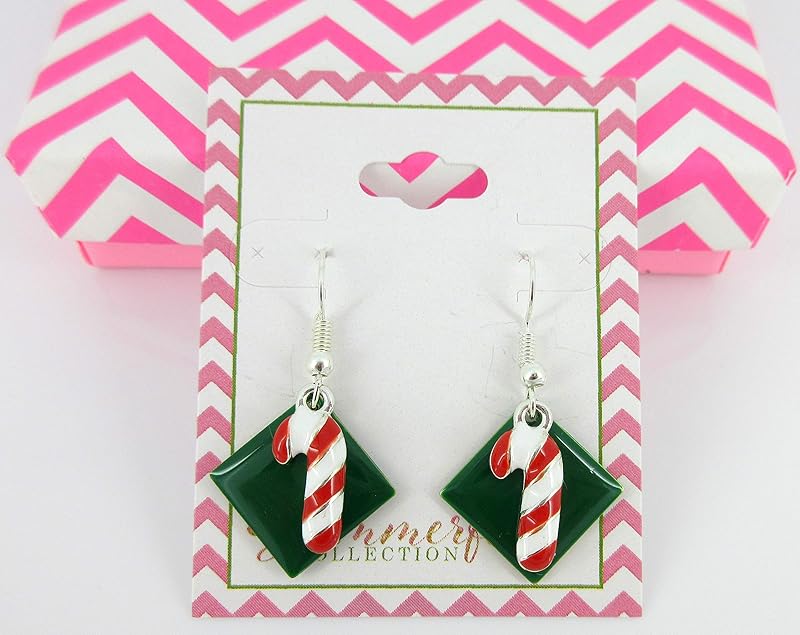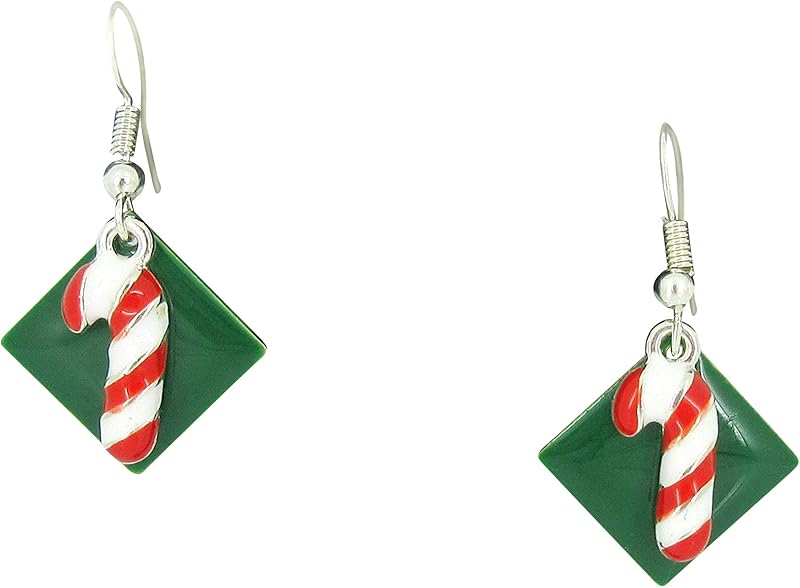These fun earrings have a 1" W enamel geometric shape. On top are cute red and white candy cane charms. Total earring drop is appx. 1.75" L. Fish hook closure. In stock and ready to ship out. Comes in a gift box for easy gift-giving. They're so unique though, you might be tempted to keep them for yourself!
