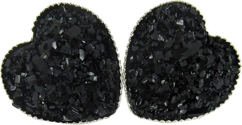Summerfield Collection Silver-tone Heart Faux Druzy Stone Stud Earrings 12mm (Black)