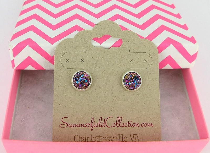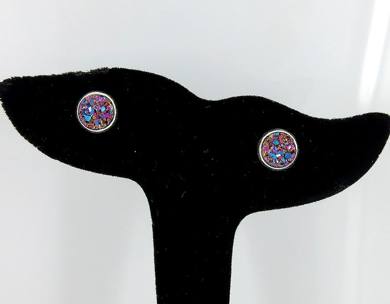 Summerfield Collection Silver-tone Metallic Faux Druzy Stone Stud Earrings 8mm (Pink/Teal)