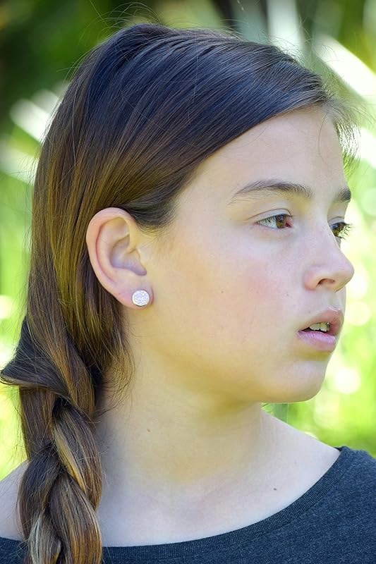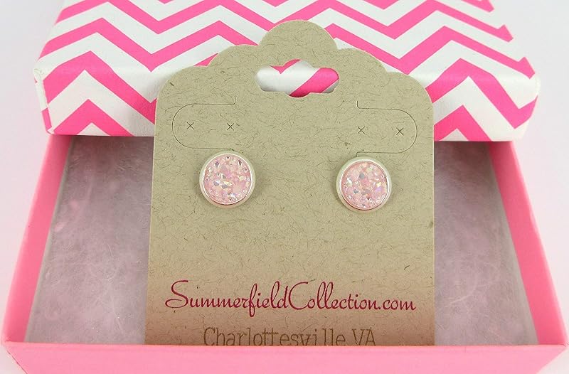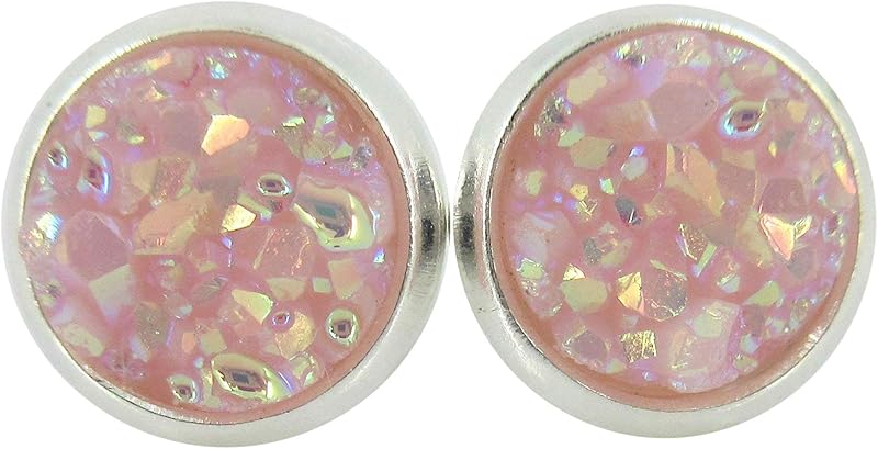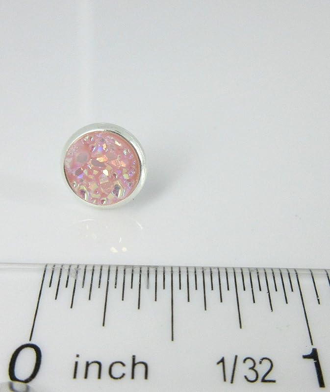 Summerfield Collection Silver-tone Pastel AB Faux Druzy Stone Stud Earrings 8mm (Ballet Pink)