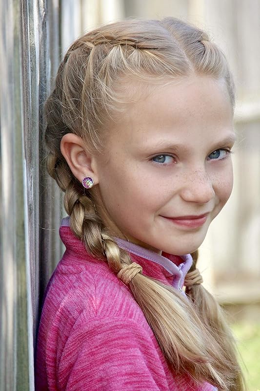 These earrings are so fun! The diameter is 10mm, appx. 3/8". Set in a shiny silver-tone round bezel setting. Post closure. In stock and ready to ship out. Comes in a gift box for easy gift-giving. They're so cute though, you might be tempted to keep them for yourself! Nickel, cadmium and lead safe.