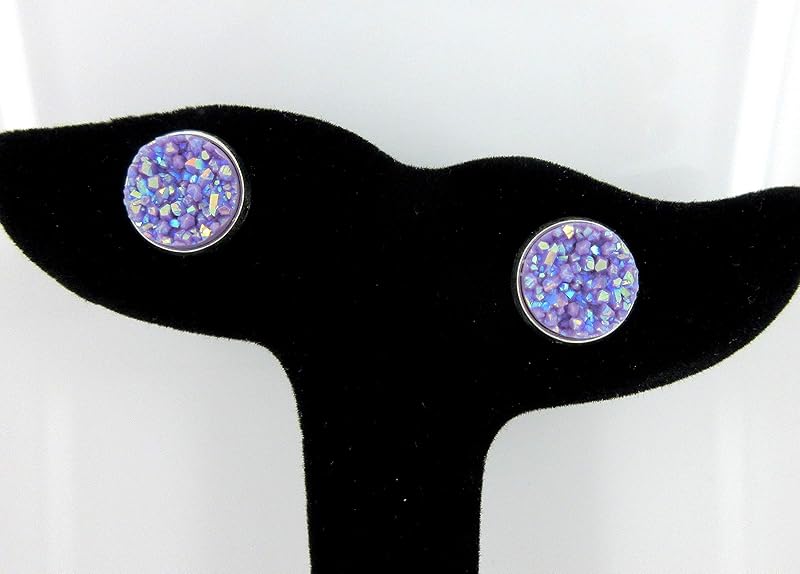 Summerfield Collection Silver-tone Solid AB Faux Druzy Stone Stud Earrings 12mm (Lavender Purple)