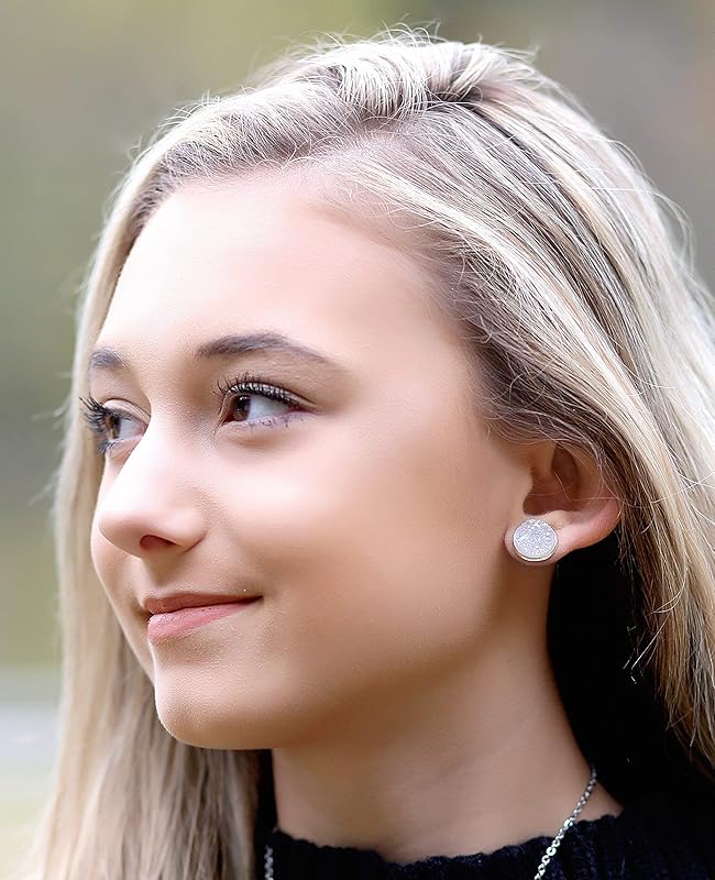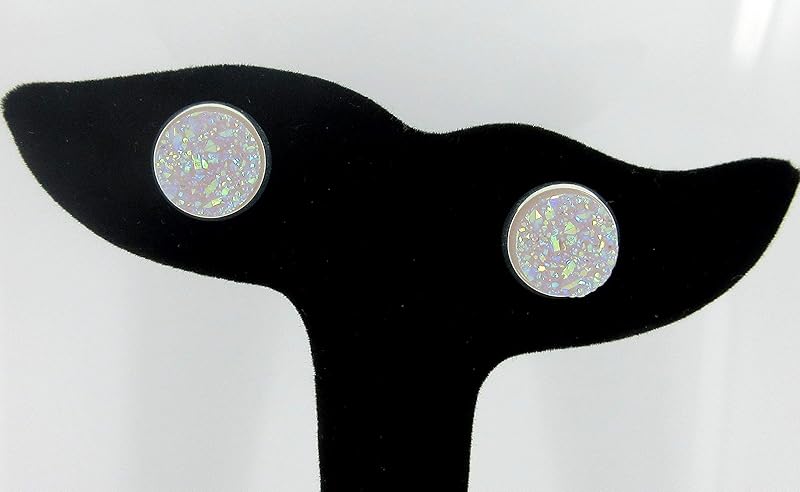 Summerfield Collection Silver-tone Solid AB Faux Druzy Stone Stud Earrings 12mm (Lilac Purple)